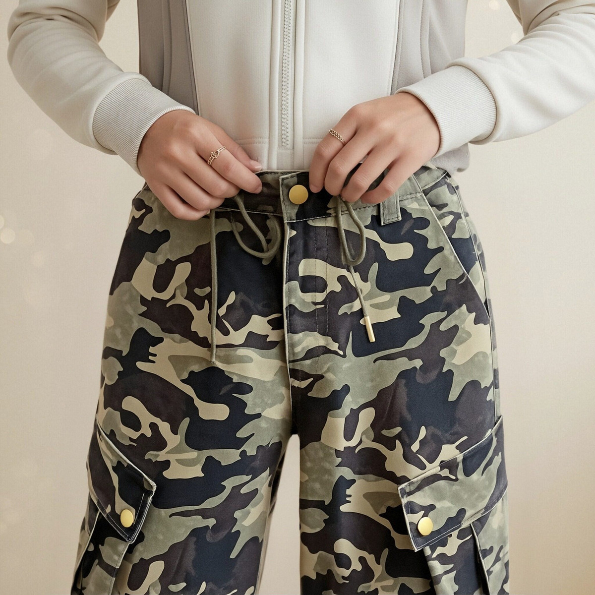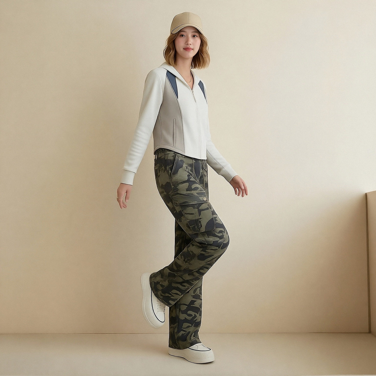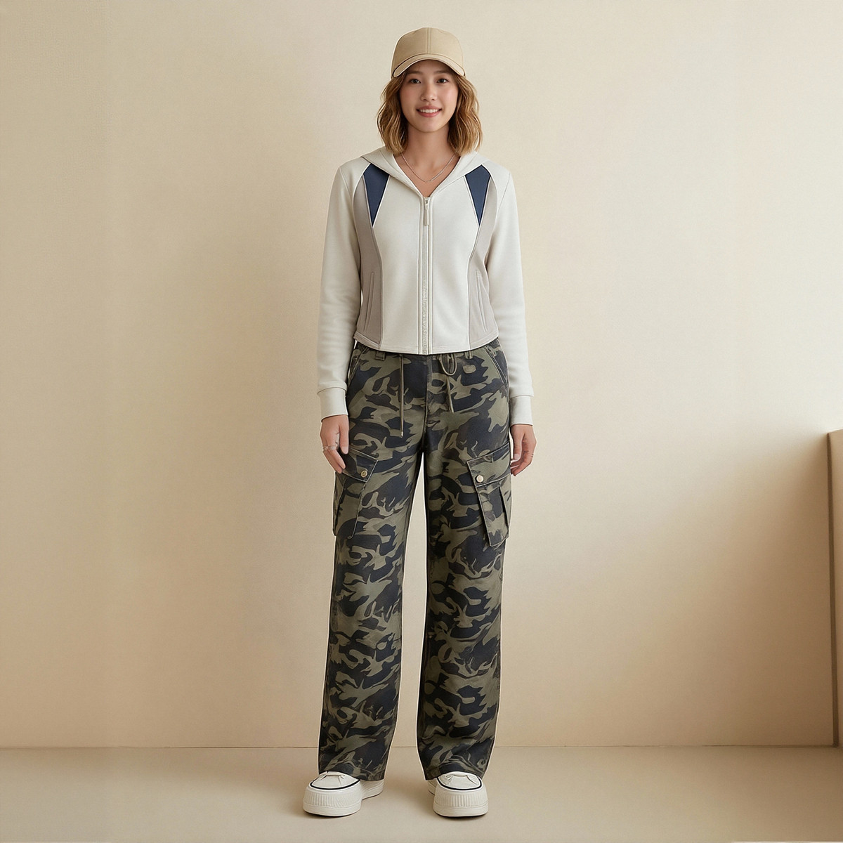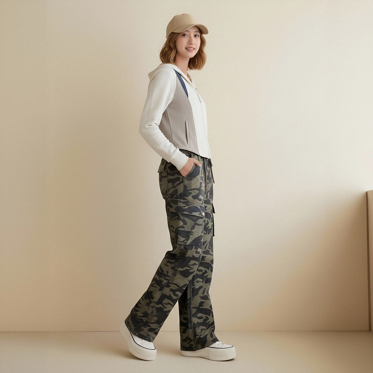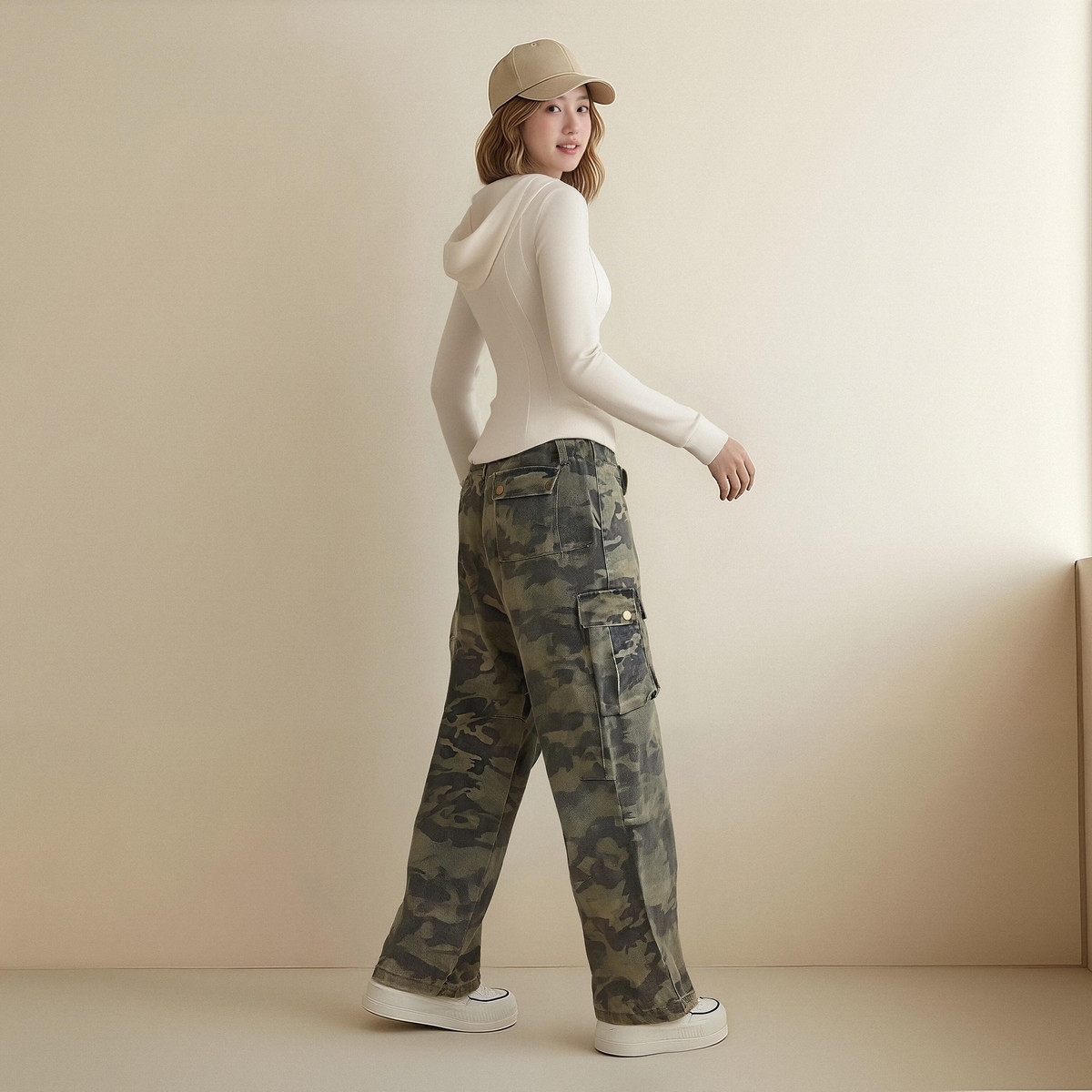 📚 西町村屋潮酷工装裤女装春季新款美式休闲做旧迷彩裤子XAAA10371