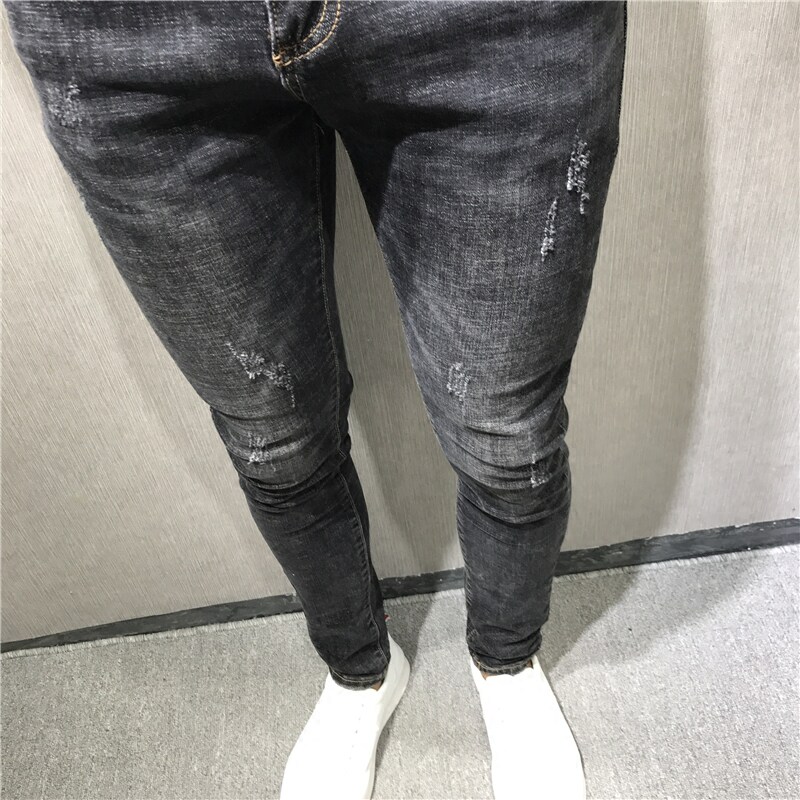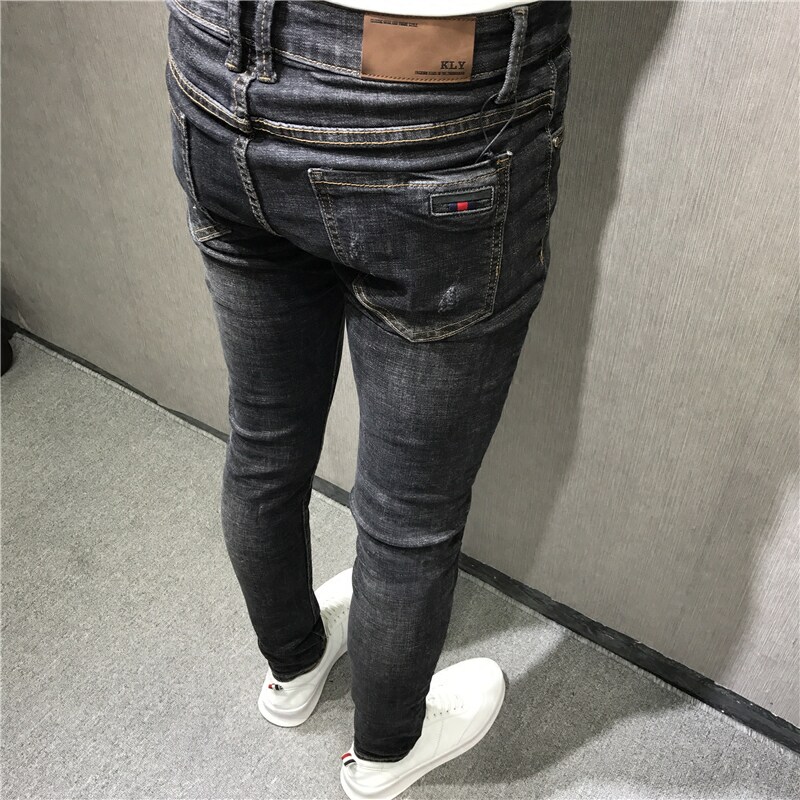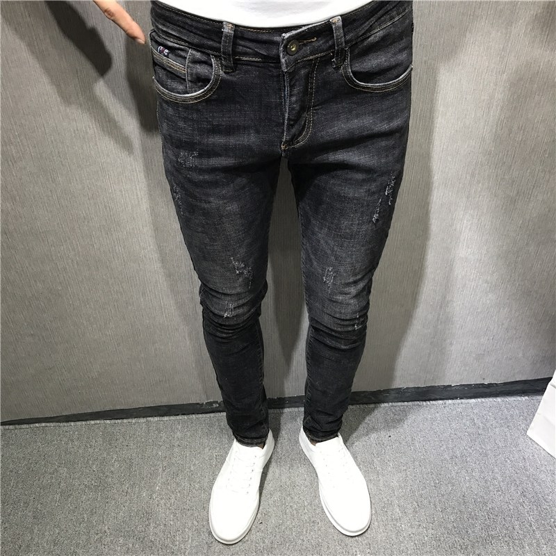 📚 潮男秋冬新韩修身黑黄猫须小脚牛仔裤男长 社会精神小伙快手网红