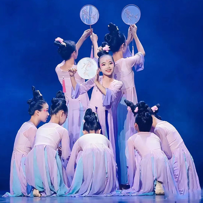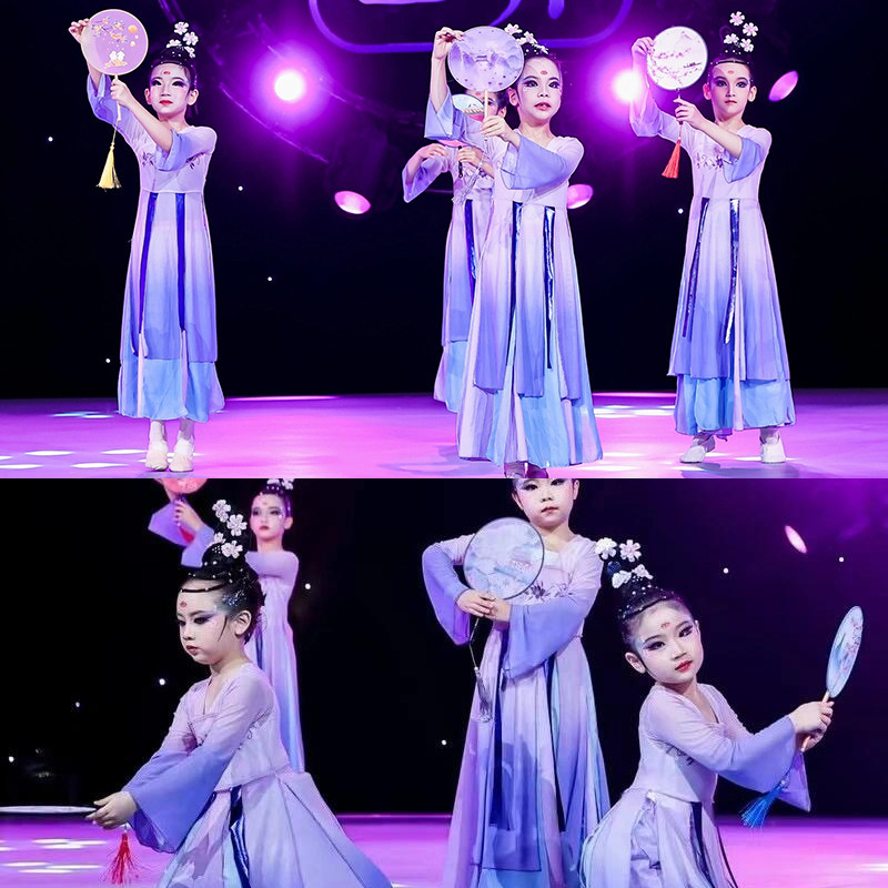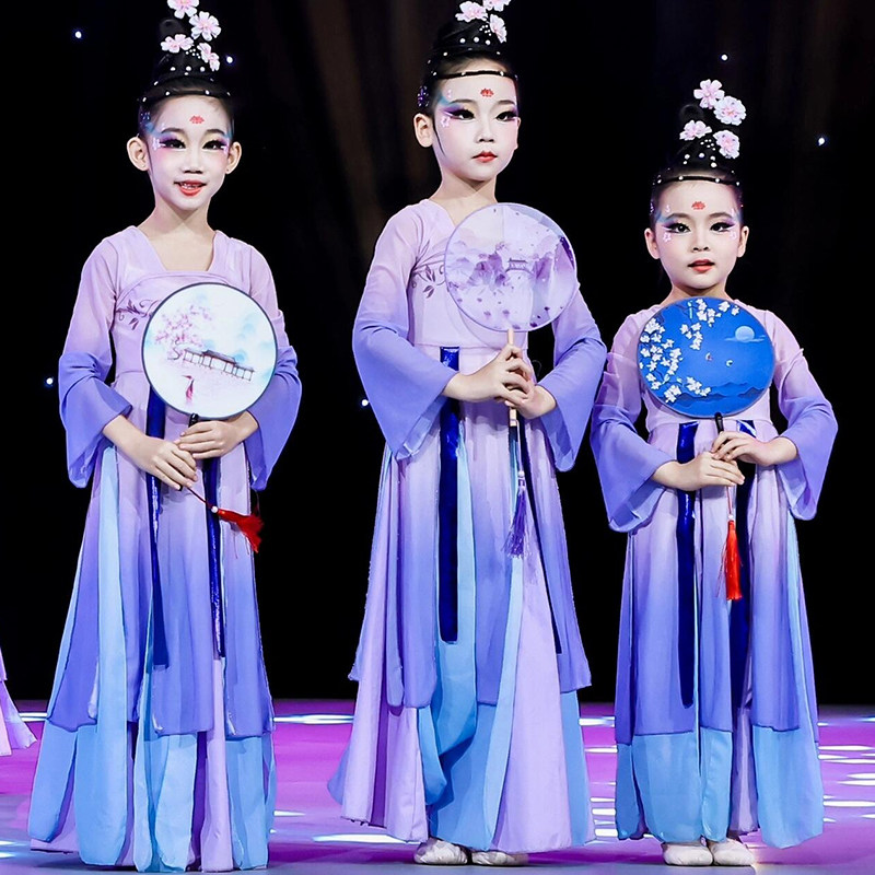 📚 春三月儿童古典舞演出服江南少女舞蹈服胭脂妆桃花笑如梦令练功服