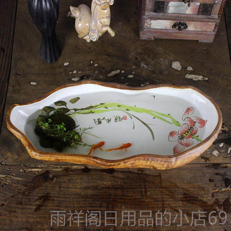 📚 正品景德镇意陶瓷鱼缸典彷石龟缸手绘花水古培水莲仙碗创莲花盆