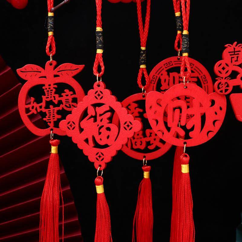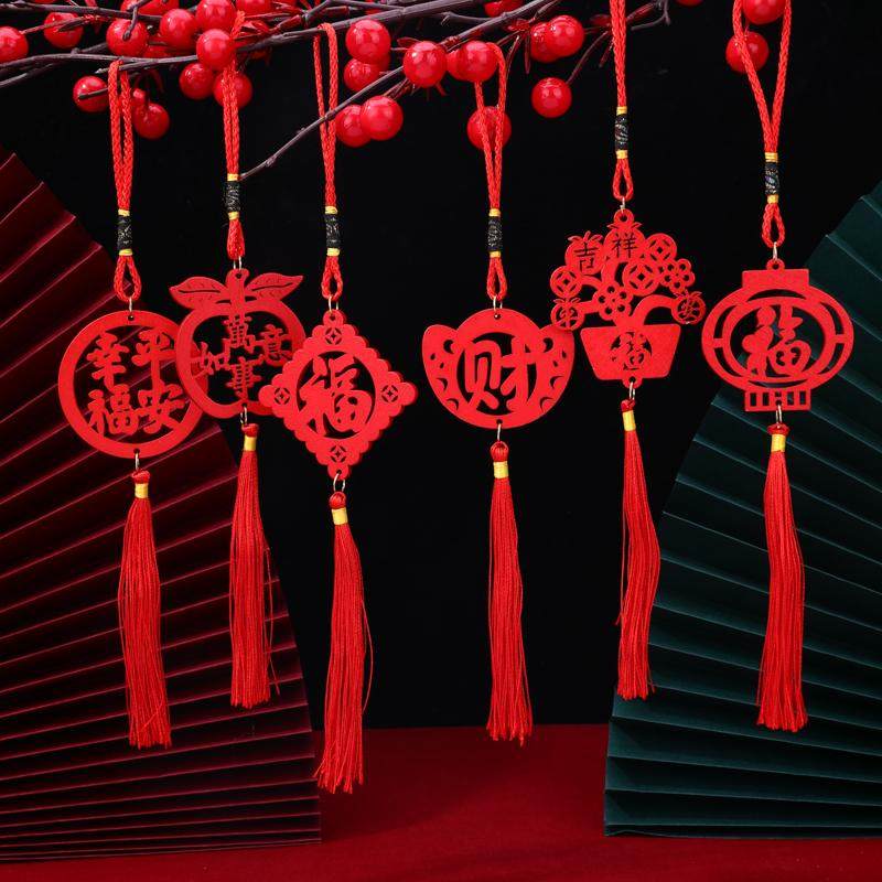 📚 马年春节木牌福字小挂件年宵花桶恭喜发财红色过新年装饰树上平安