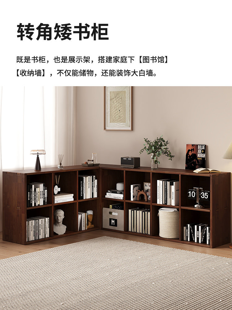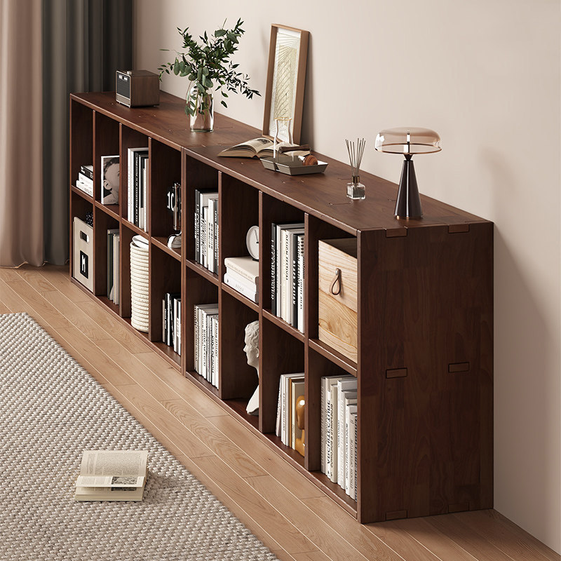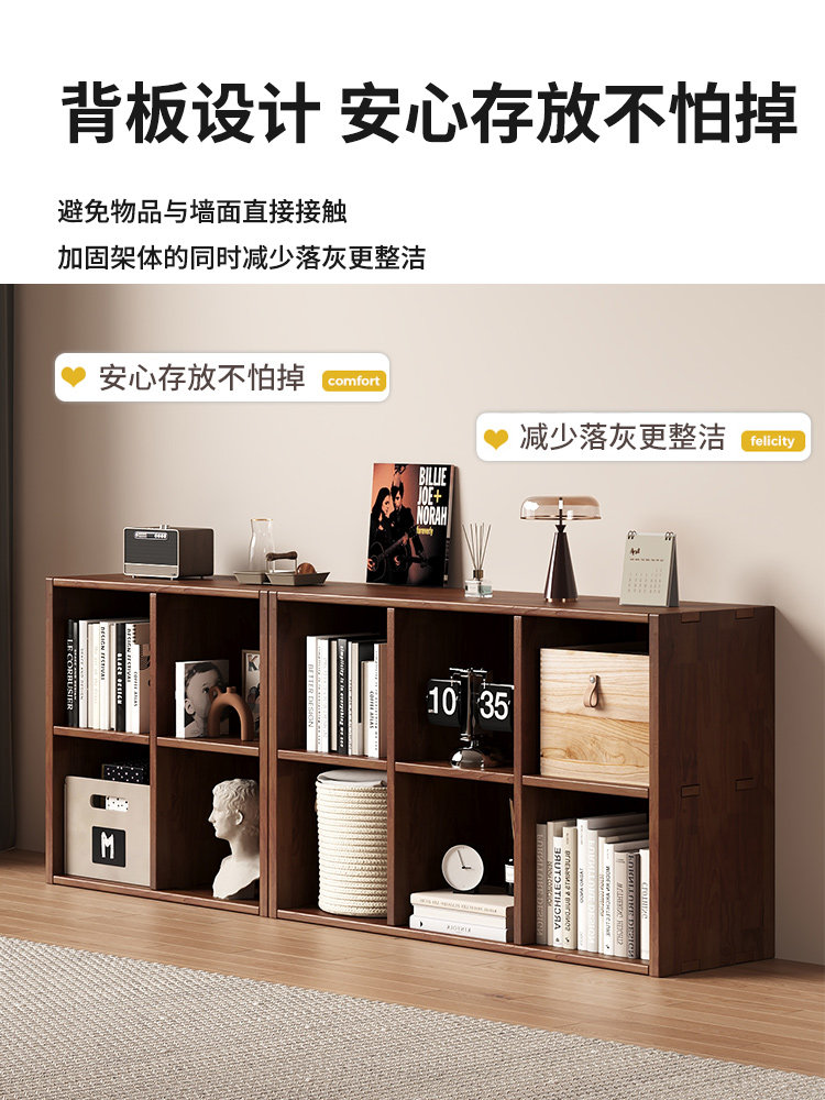 📚 全实木书架落地置物架八格柜子储物简易家用客厅自由组合收纳书柜