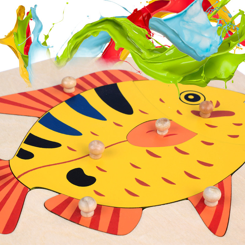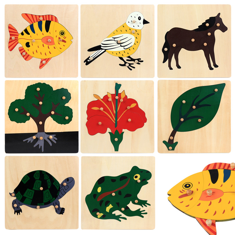 📚 蒙氏教具木制拼图儿童早教大木钉益智幼儿园椴木动植物嵌板玩具