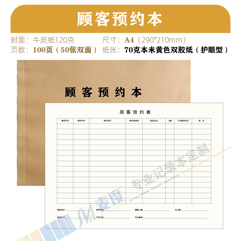 📚 顾客预约本客户预约表美容院电话预约记录本时间通讯录美甲美睫档案本加厚笔记本子理发店会员登记本通用定制