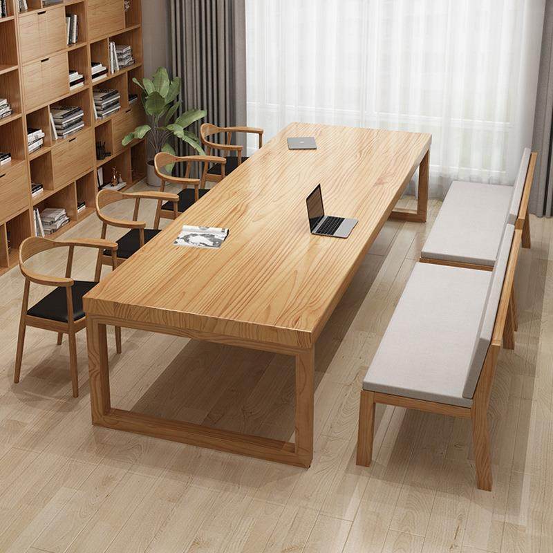 📚 简约实木办公桌办公室职员商务培训公司会议桌组合图书馆阅览桌椅