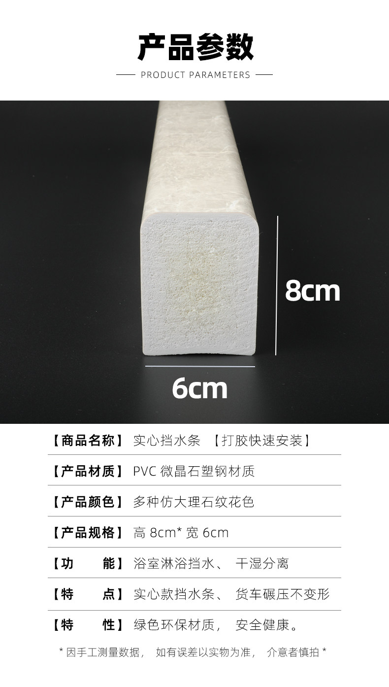 📚 高8cm宽6cm实心PVC浴室挡水条淋浴隔水阳台卫生间厕所阻拦地面水