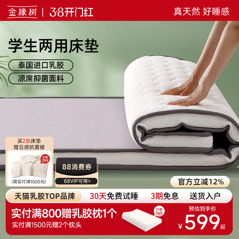 📚 金橡树泰国两用乳胶床垫大学生宿舍专用单人可折叠床褥冬夏双面睡