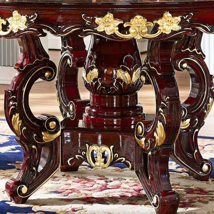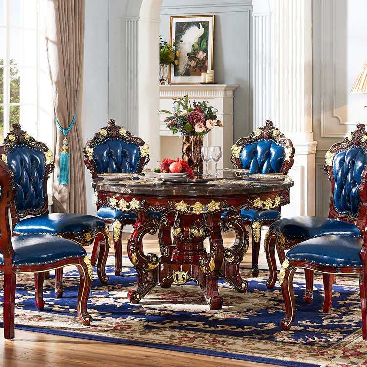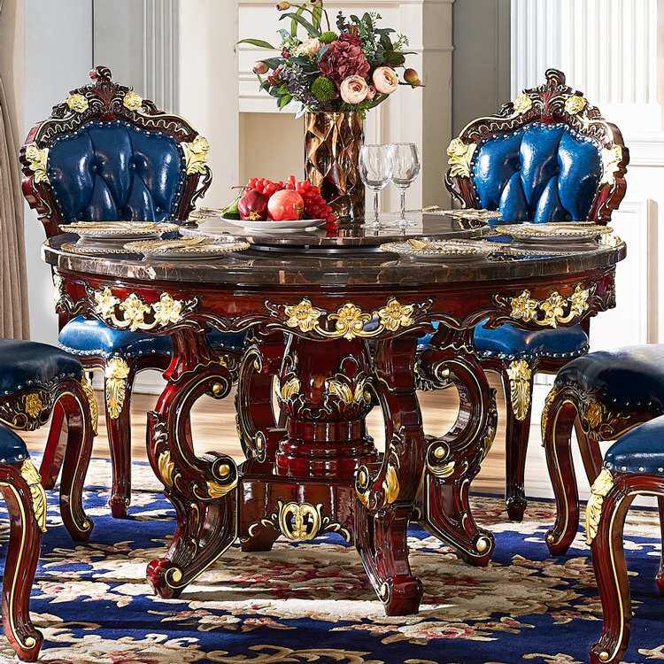 📚 欧式大理石餐桌椅组合新古典红檀全实木雕花带转盘小户型家用圆桌