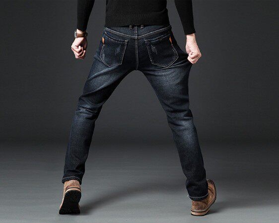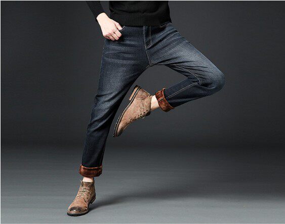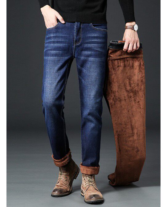 📚 保暖防冻寒男裤大码蓝色中腰商务冷天新款加厚绒直筒牛仔有型帅气