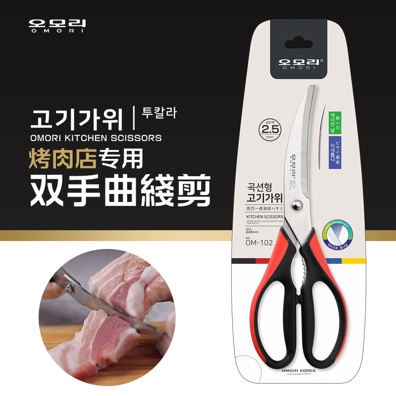 📚 OMORI韩国烤肉剪刀套装牛排剪锋利剪肉剪刀食品级剪刀烤肉店商用