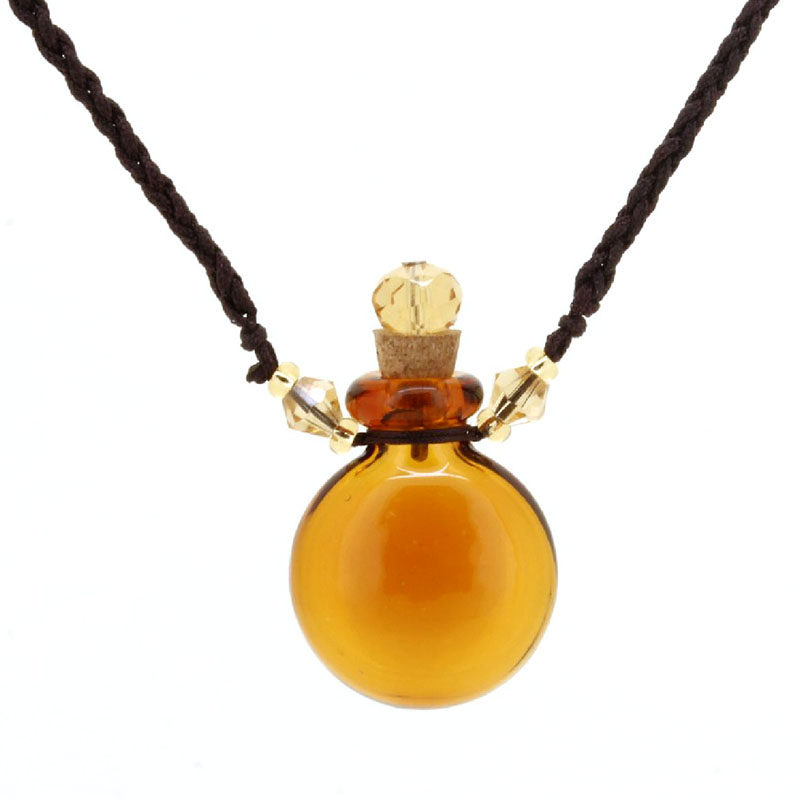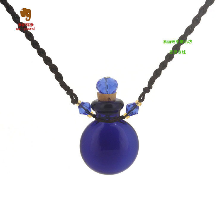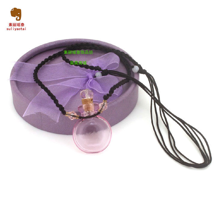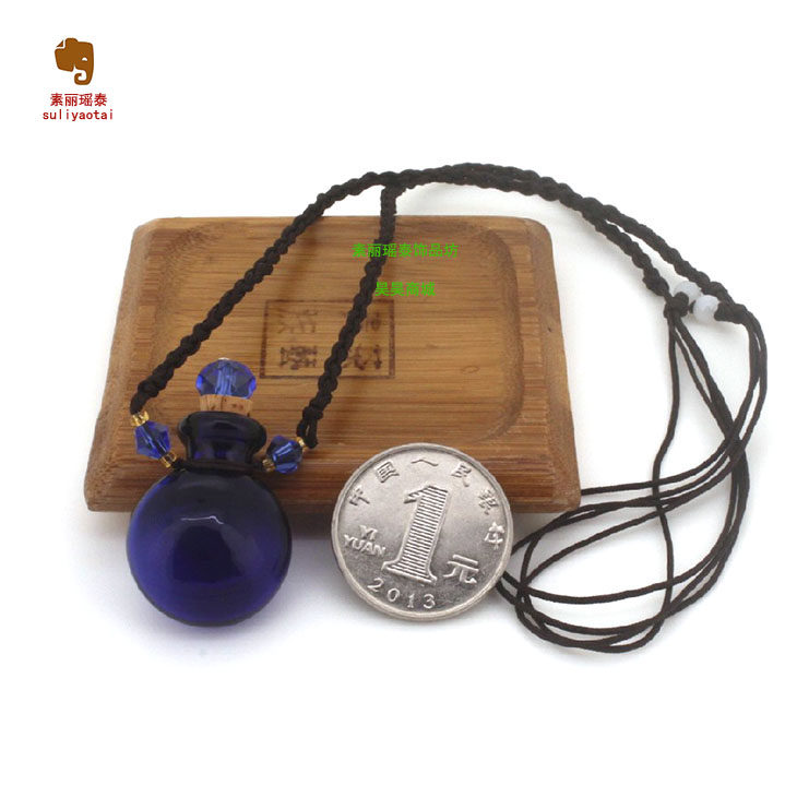 📚 纯色扁款空心琉璃精油瓶项链吊坠储物装沙容器移动香薰香水瓶挂件