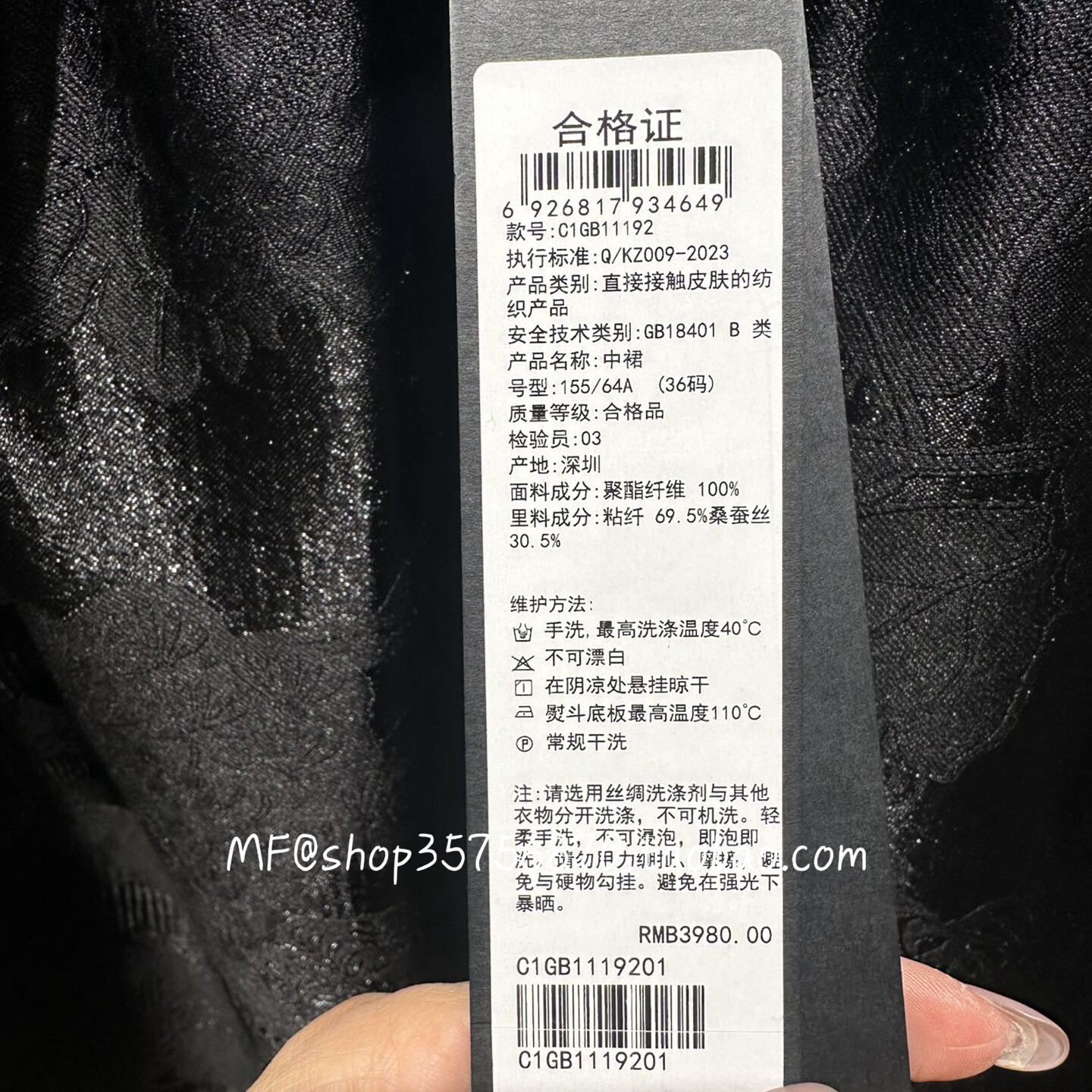 89¥ MF937 rS1yUvjl8sD¥ https://m.tb.cn/h.iWzNyeb ZCY朱崇恽2026春专柜正品 聚酯纤维 廓形提花半裙C1GB11192 3980 --------------------- 【原售价】2,400元 【现售价】2,400元。