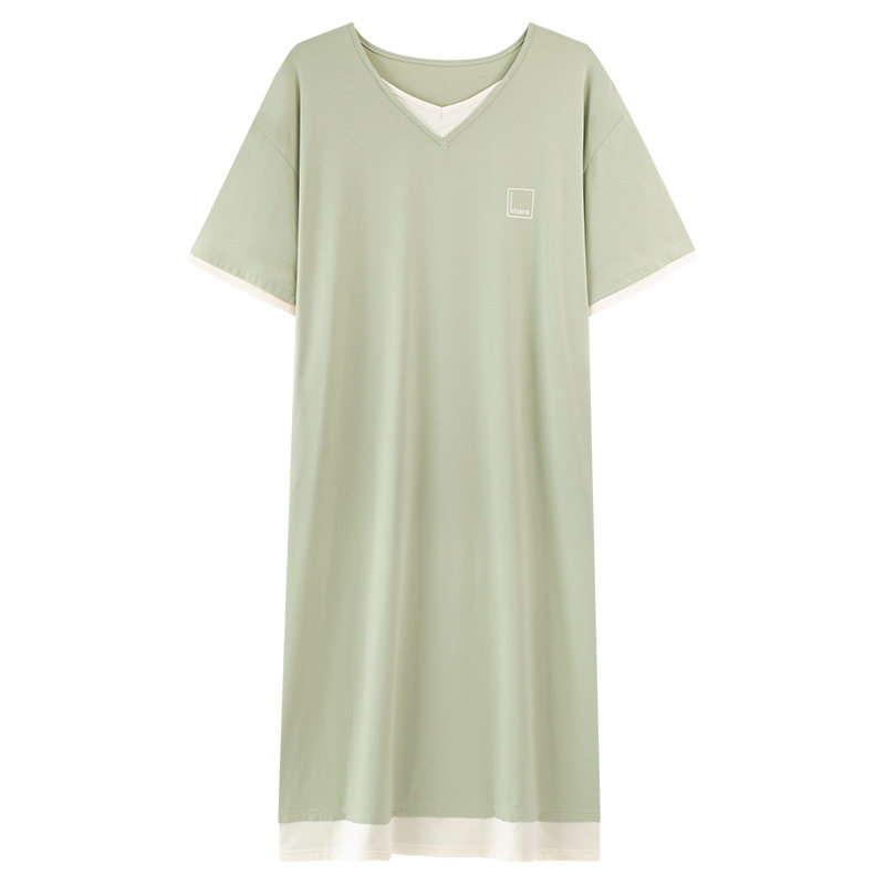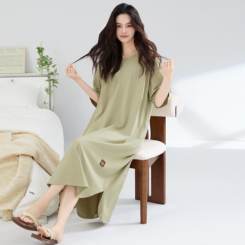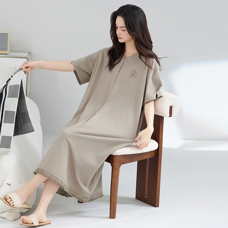 📚 简单家居睡裙女夏纯棉短袖长款拉架凉爽棉睡衣裙子宽松大码可外穿
