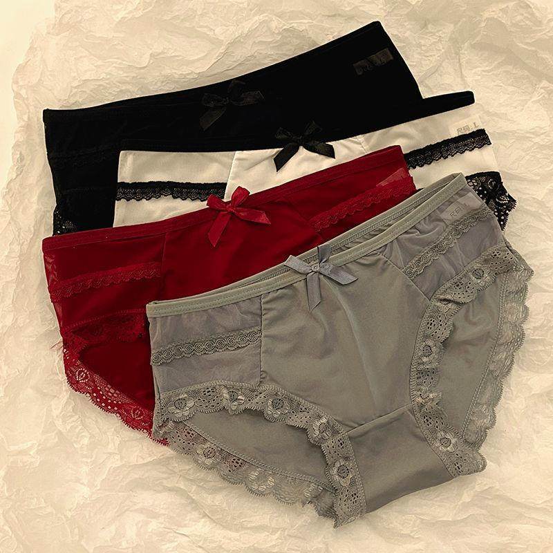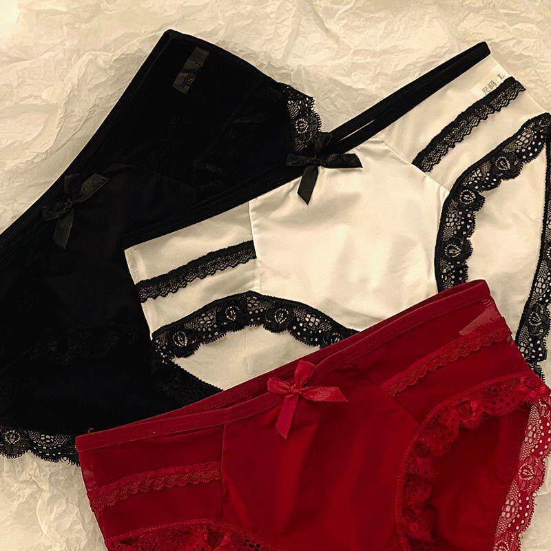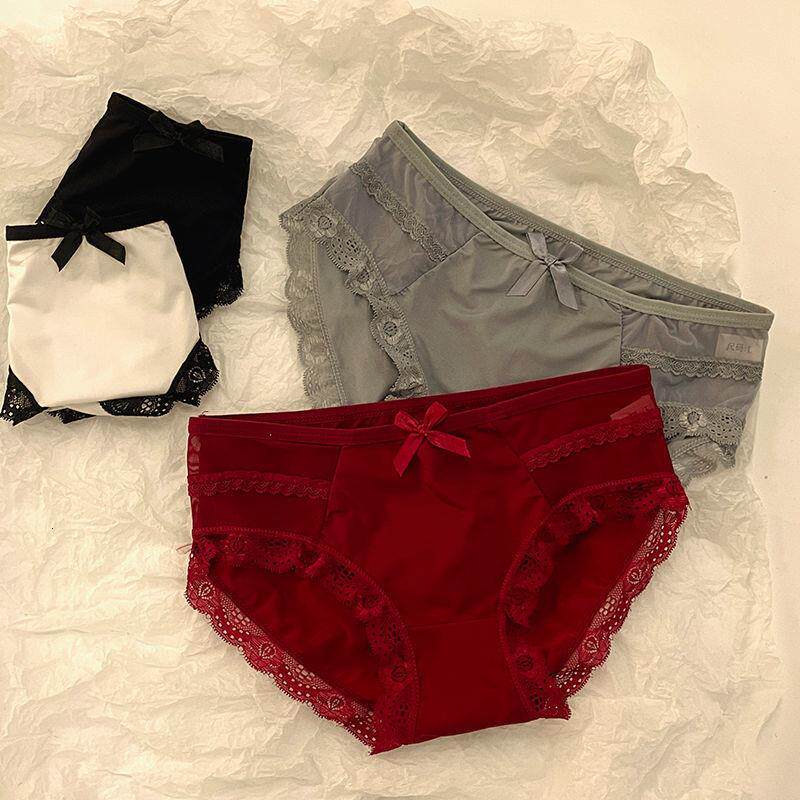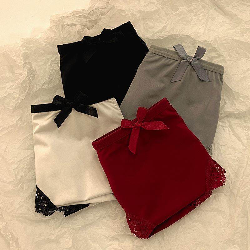 📚 1丝感蕾臀中腰蝶结生纯裆内裤/3条无痕冰性丝提三角裤蝴学少女棉