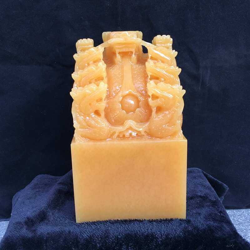 📚 玉石摆件批发 黄龙玉九龙玉玺 米黄玉龙头印章 办公玉印
