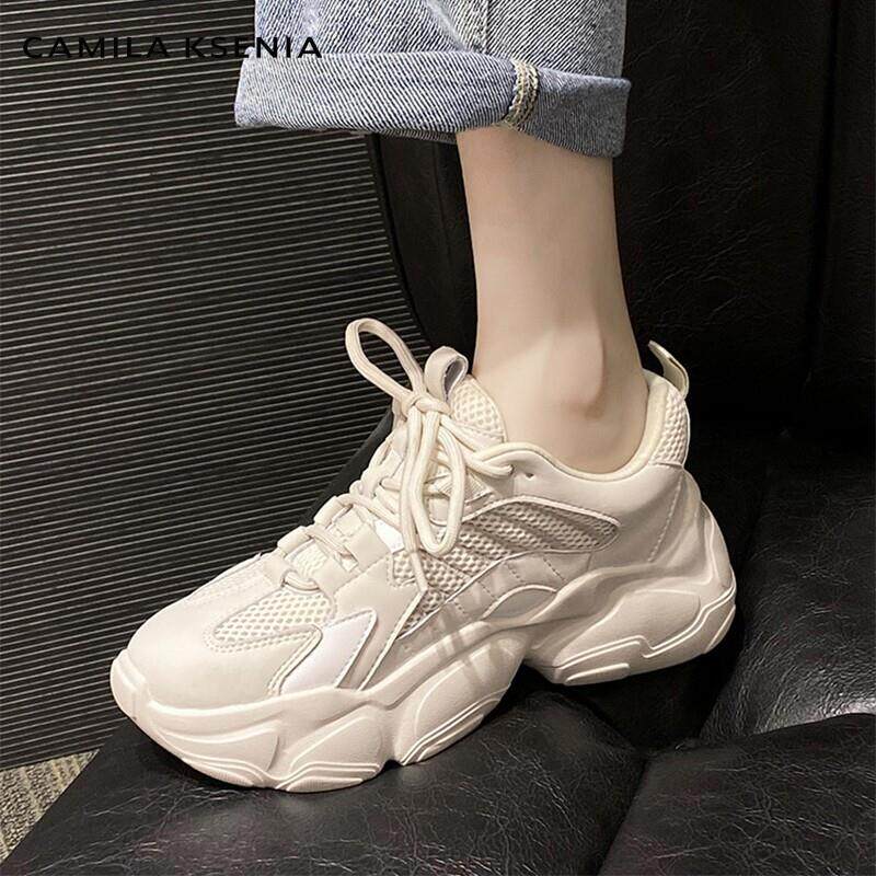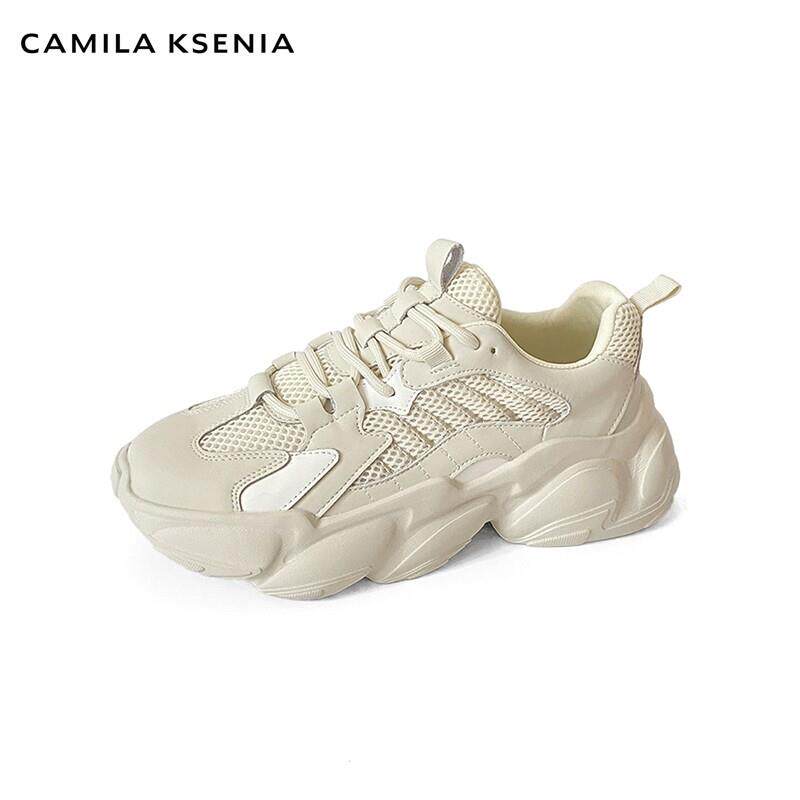 📚 CAMILA KSENIA官方店2025新款老爹鞋女秋厚底爆款网面运动小白鞋