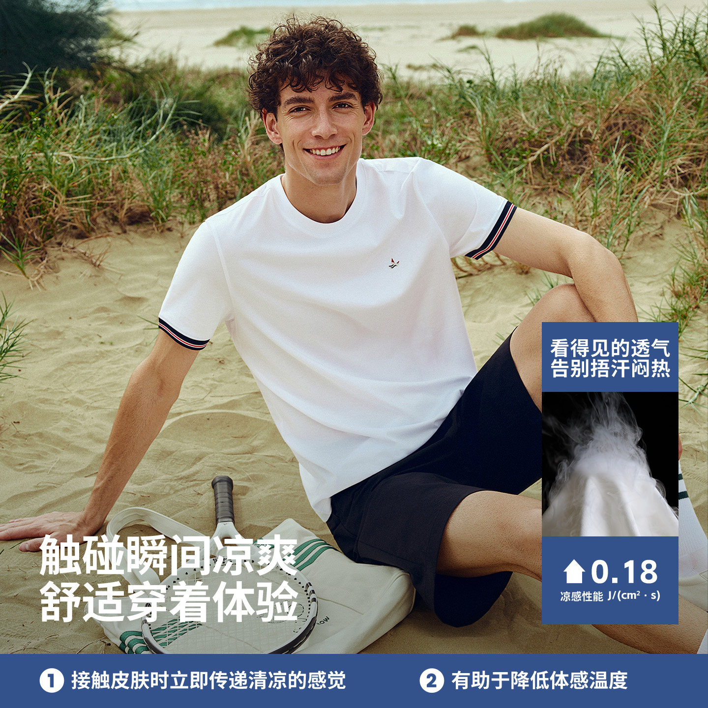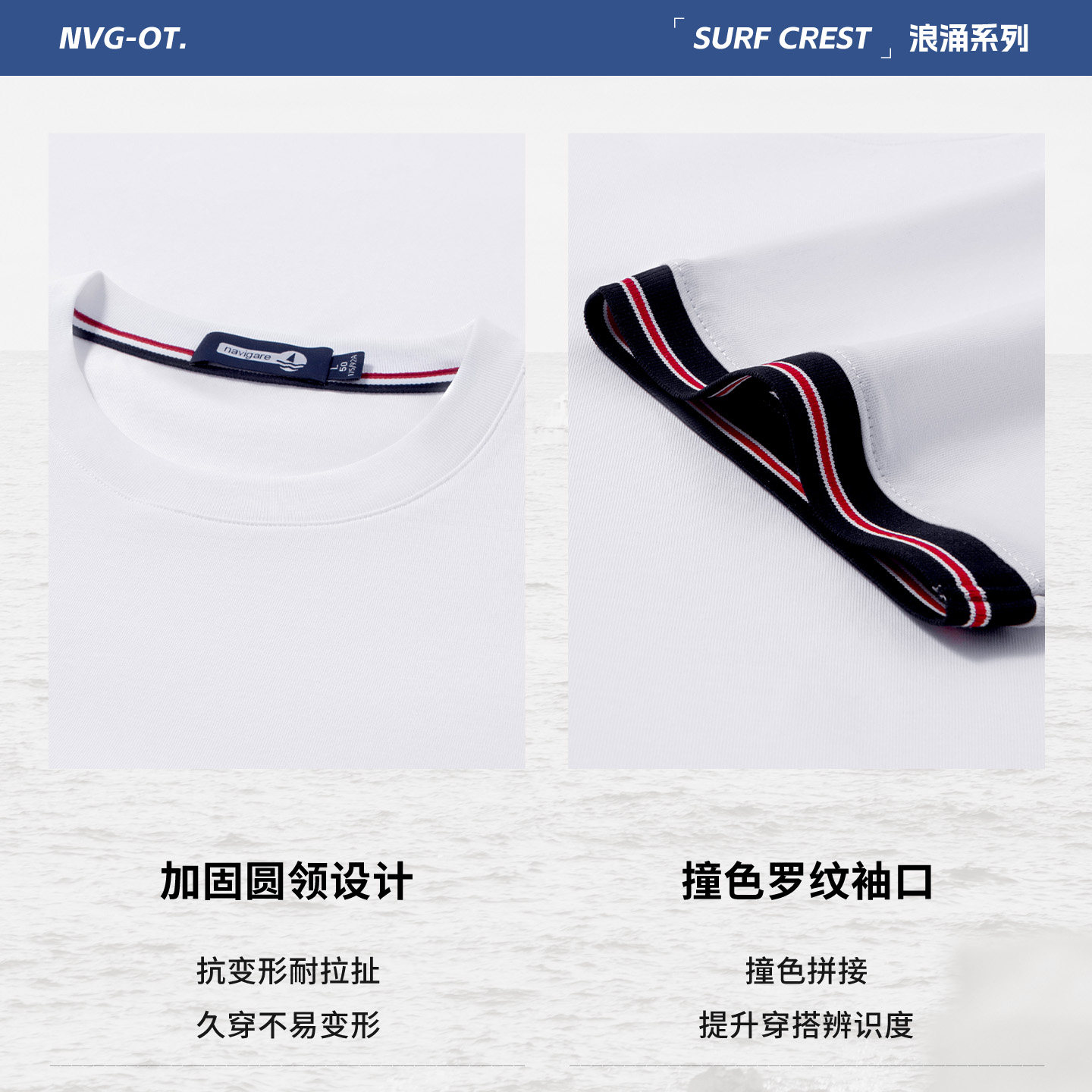 📚 [凉感]Navigare小帆船白色圆领短袖T恤男夏季新款休闲半袖体恤衫