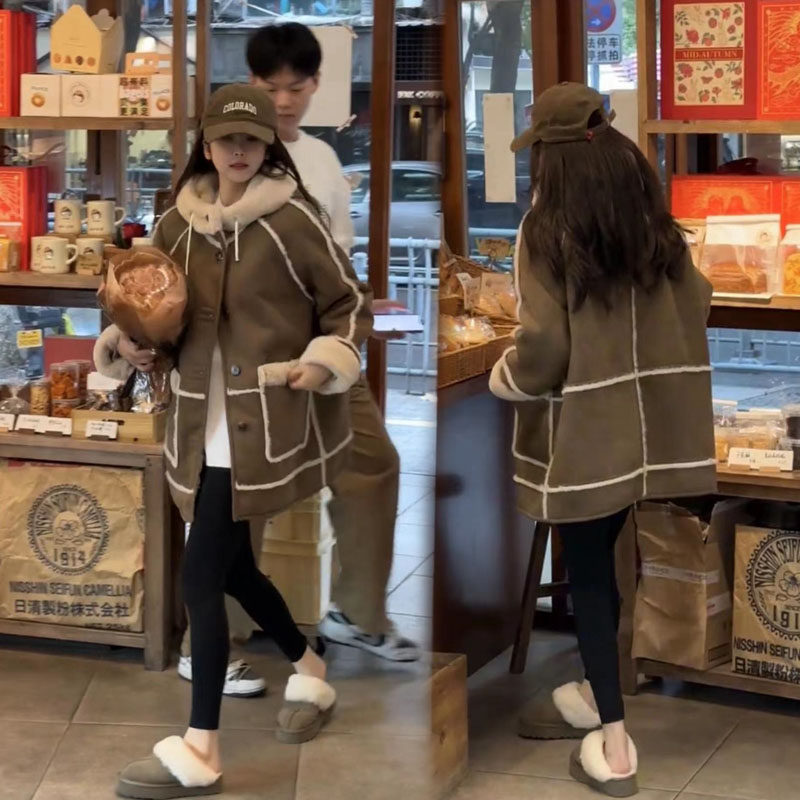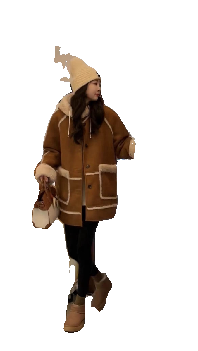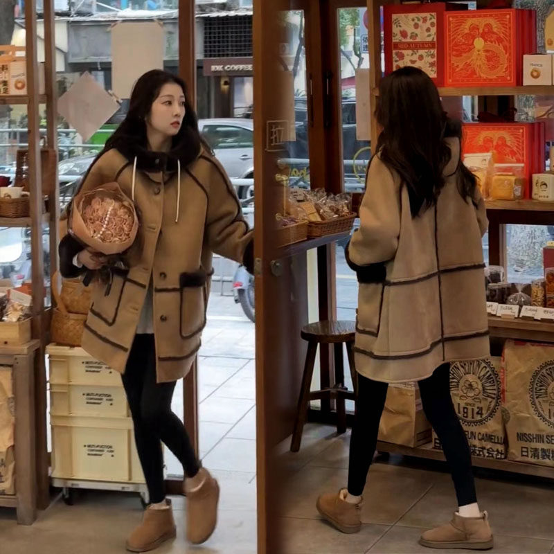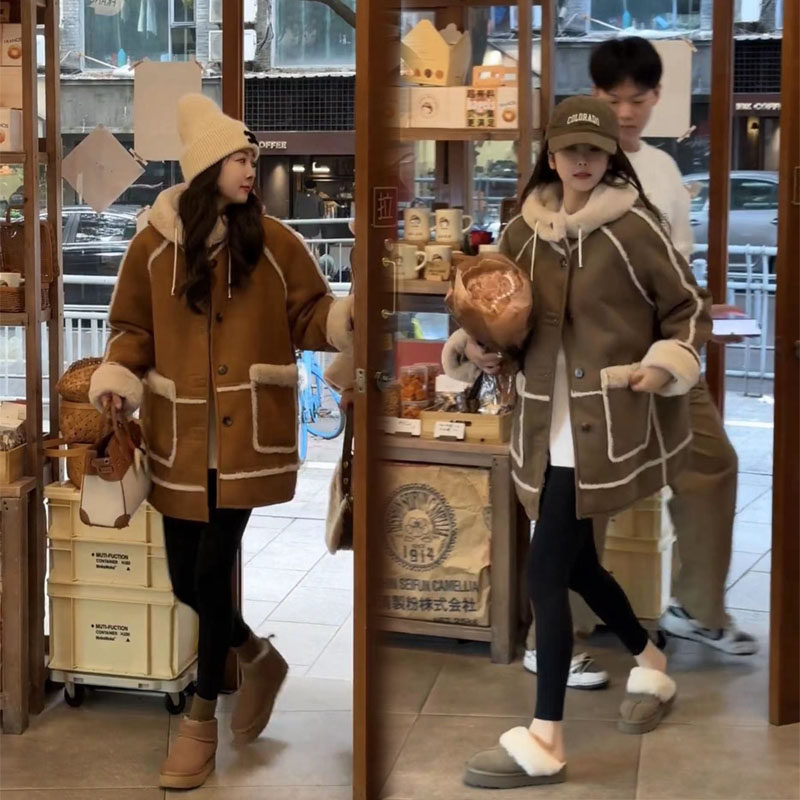 #冬季新品 #韩版连帽大衣 #羊羔毛皮毛一体 #保暖时尚 #券后价158
