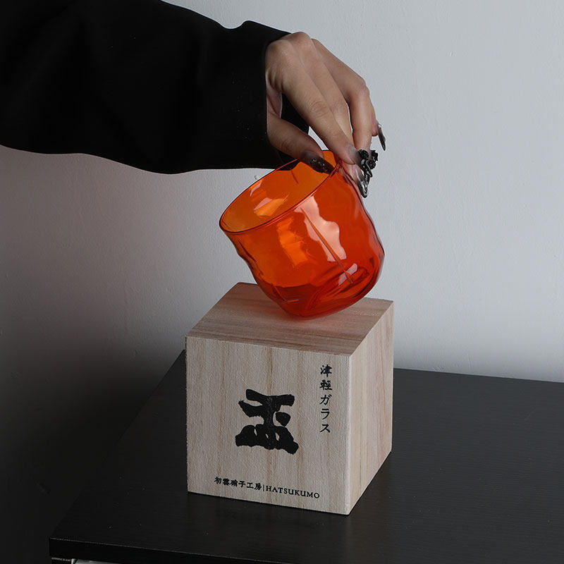📚 日出江山红胜火杯 初云中古切子手作酒杯 日式津轻彩色硝子出口装