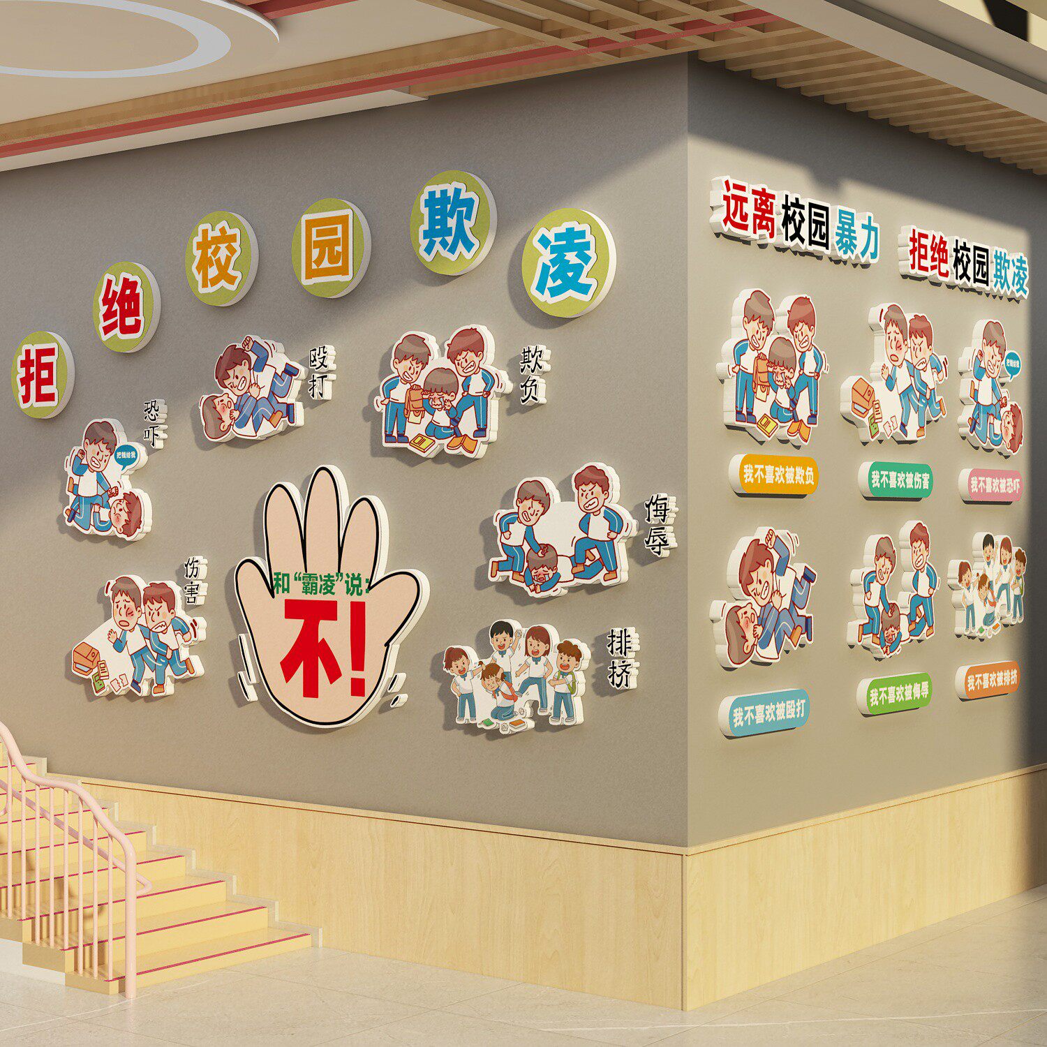📚 拒绝预防反校园霸欺凌黑板报墙贴文化幼儿园主题安全宣传环创展板