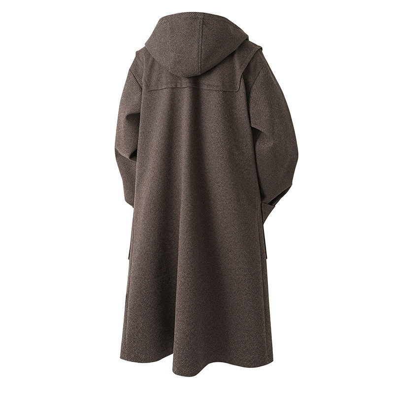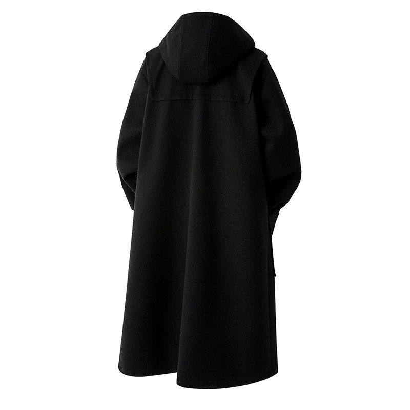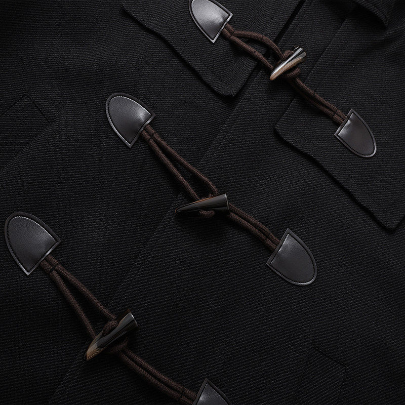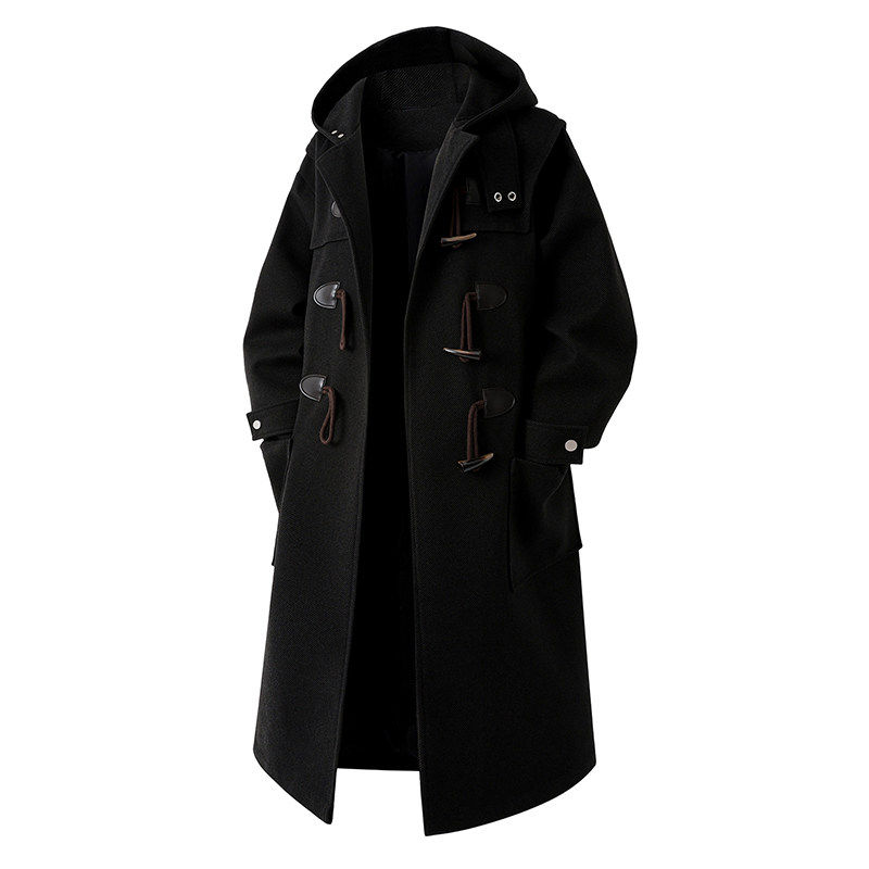 📚 毛呢大衣男中长款风衣男长款牛角扣青年男士呢子外套高档休闲披风