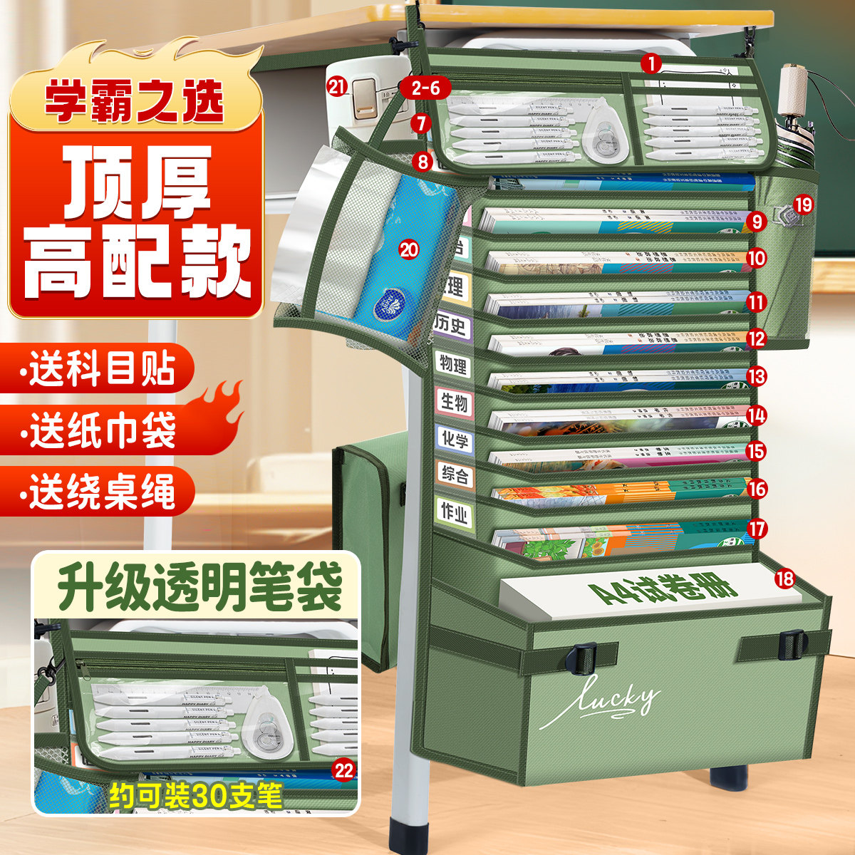 📚 挂书袋大容量桌边书袋课桌旁侧面收纳神器学生初中高中生书桌侧边侧挂教室装放书书本的袋子挂袋桌边带置物架