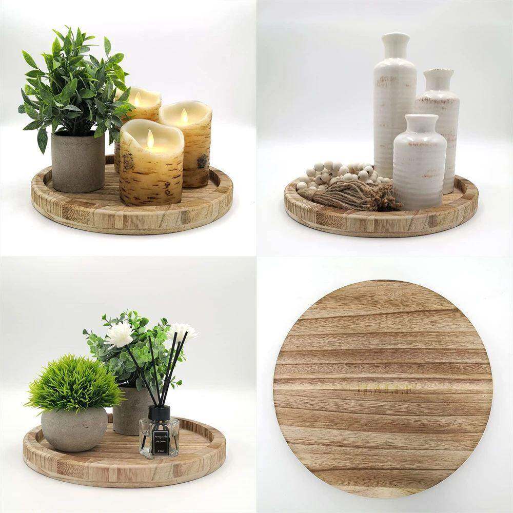 📚 Decorative Wooden Serving Tray Rustic Round Wood Plate Vinta