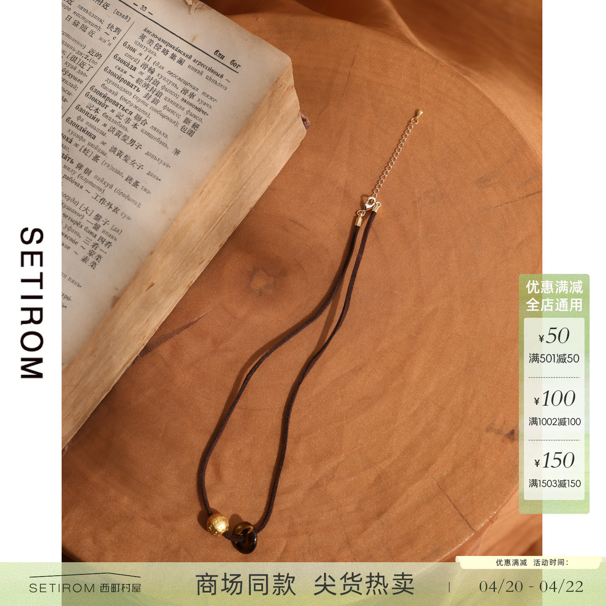 📚 西町村屋美拉德绒绳串珠项链女新款复古百搭简约锁骨链XHAA40091