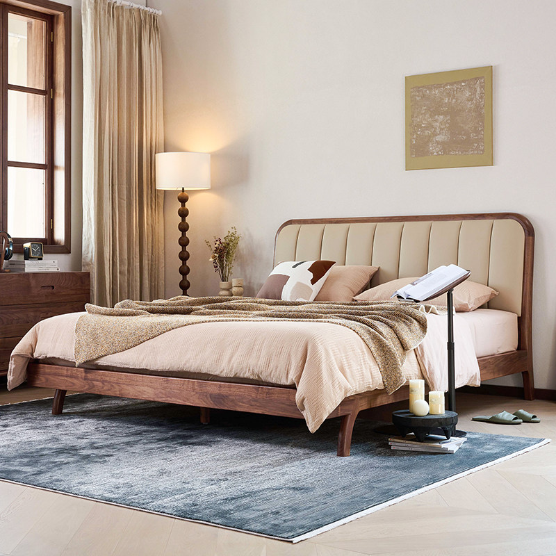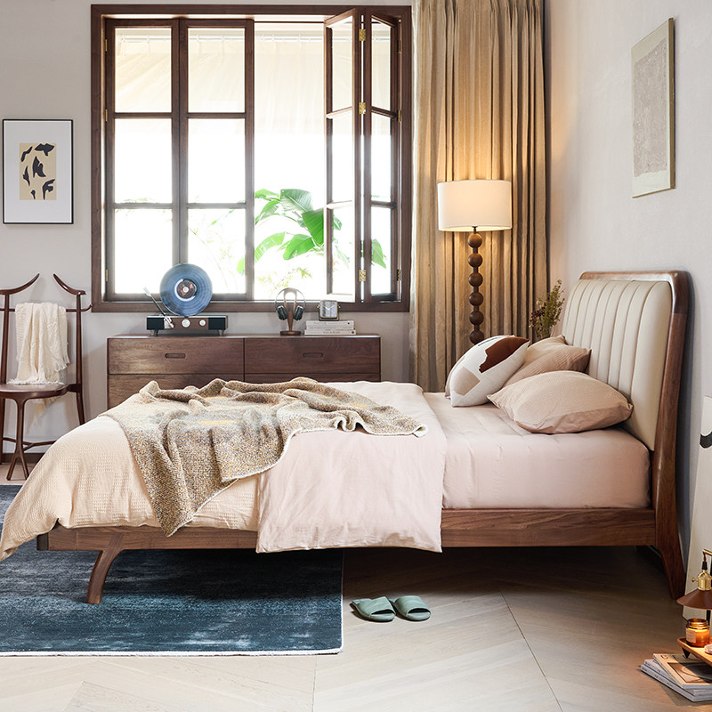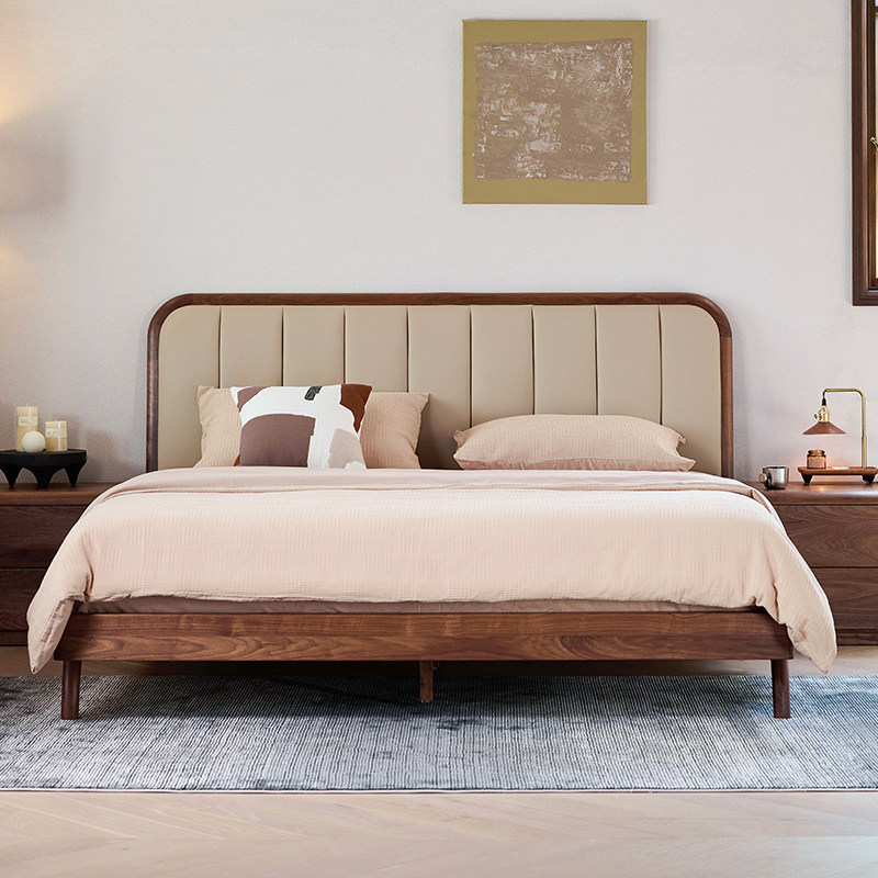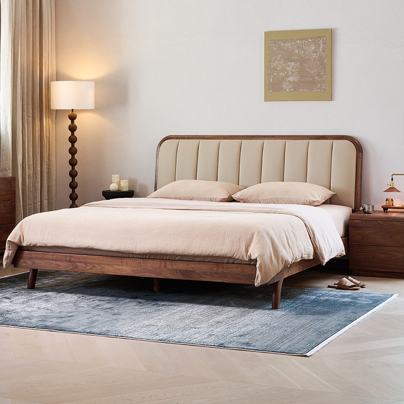 📚 欣雅图家居旗舰店2026年新款软床北美黑胡桃木实木床意式皮靠背床