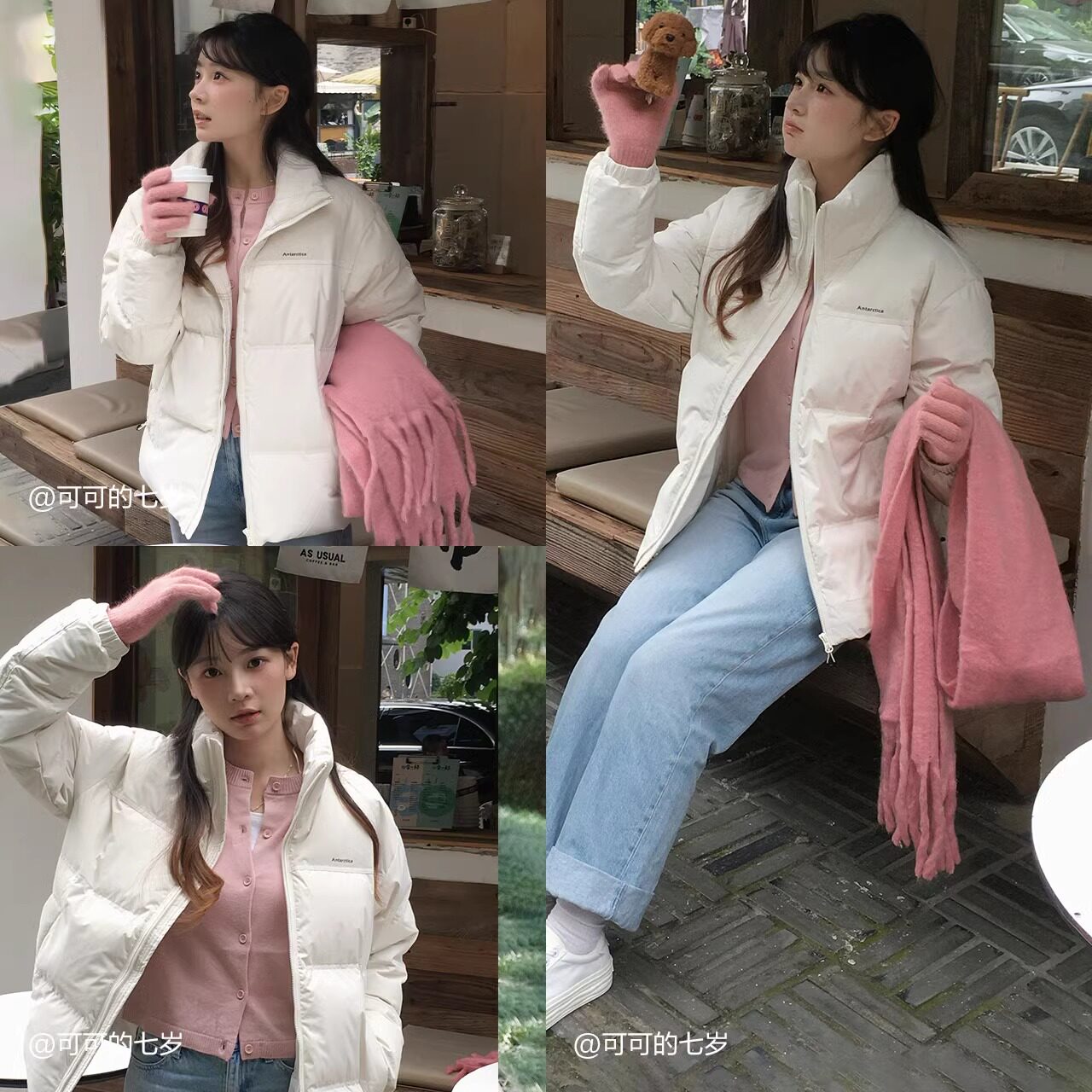 📚 商场同款森马羽绒服男装2024冬季新款面包服情侣宽松白色三防立领