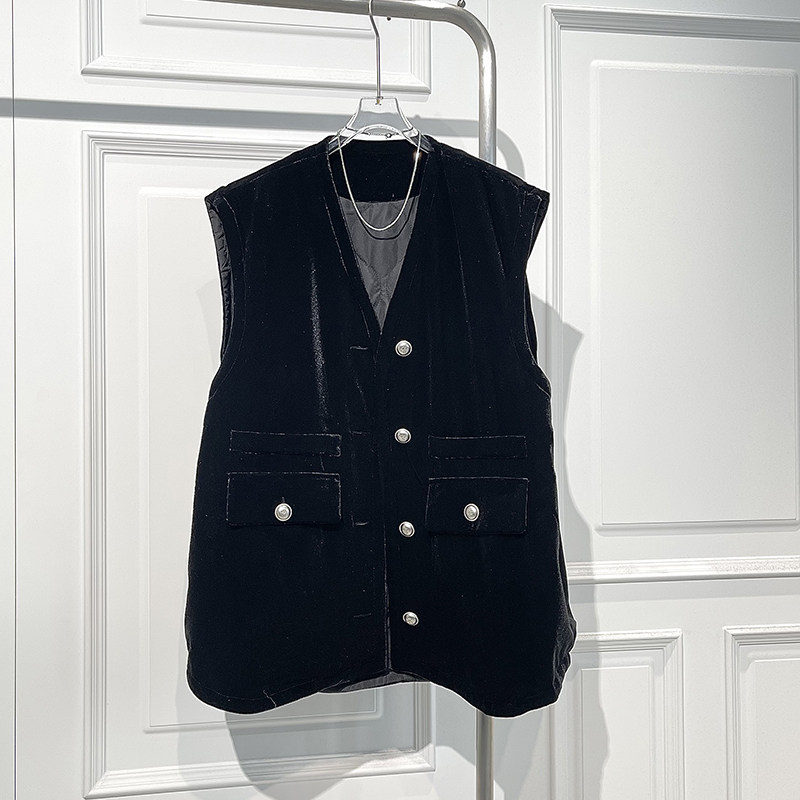 📚 气质百搭夹棉丝绒马甲女2025秋季新款宽松显瘦舒适减龄无袖棉服潮
