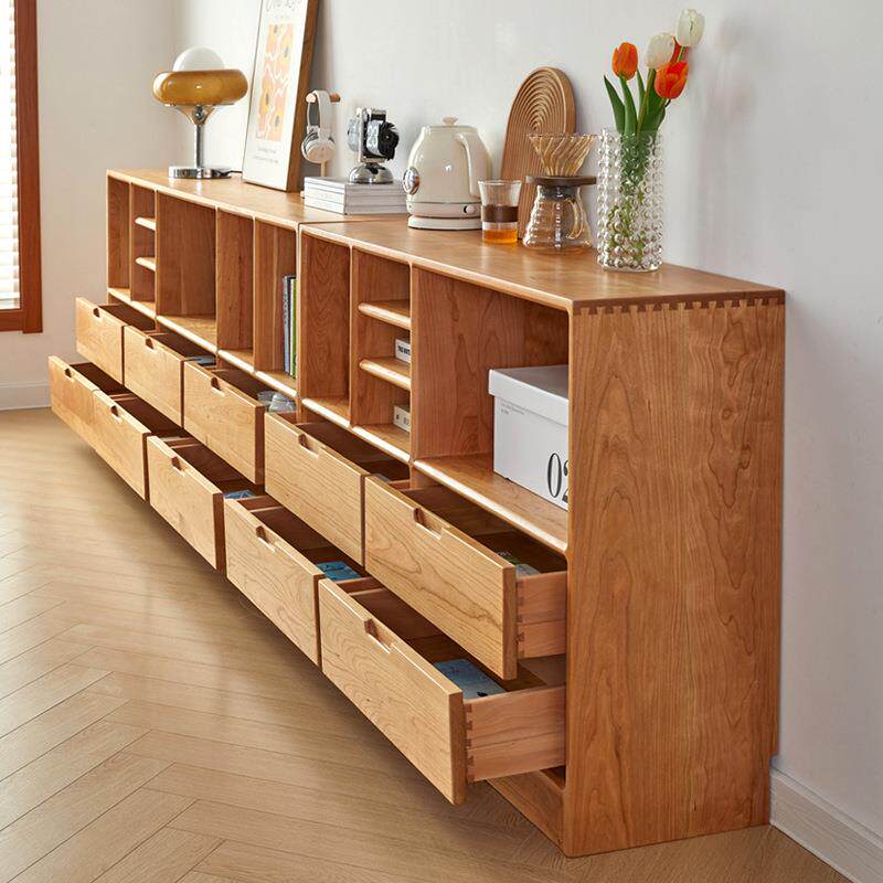📚 柜北美橡14740储木实木落地矮书柜玄关书书架樱桃木电视组合柜格