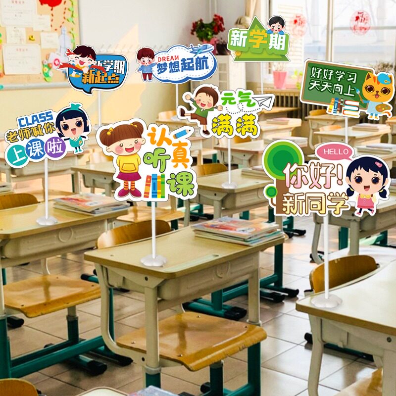 📚 开学仪式感教室布置神器课桌气球桌牌装饰立手举牌小学班级幼儿园