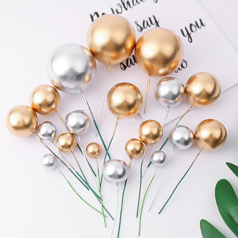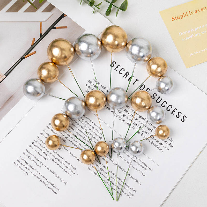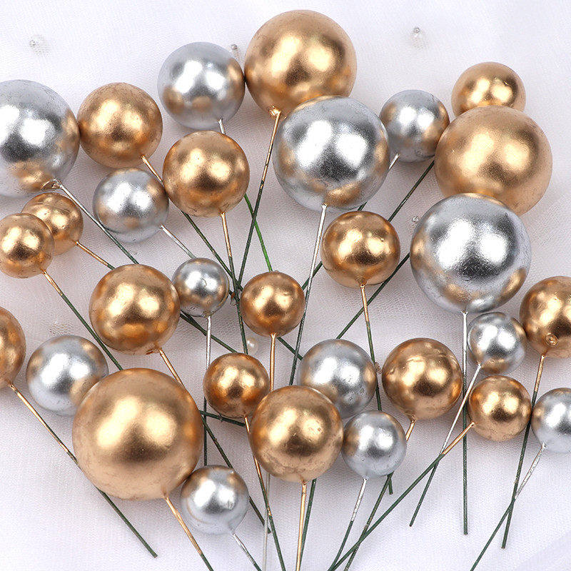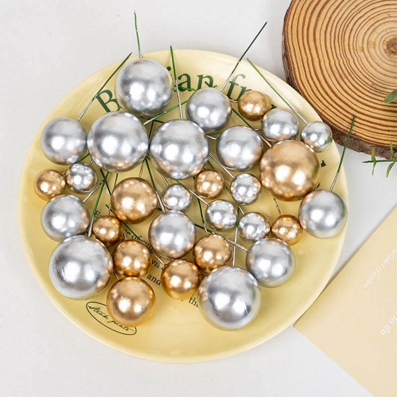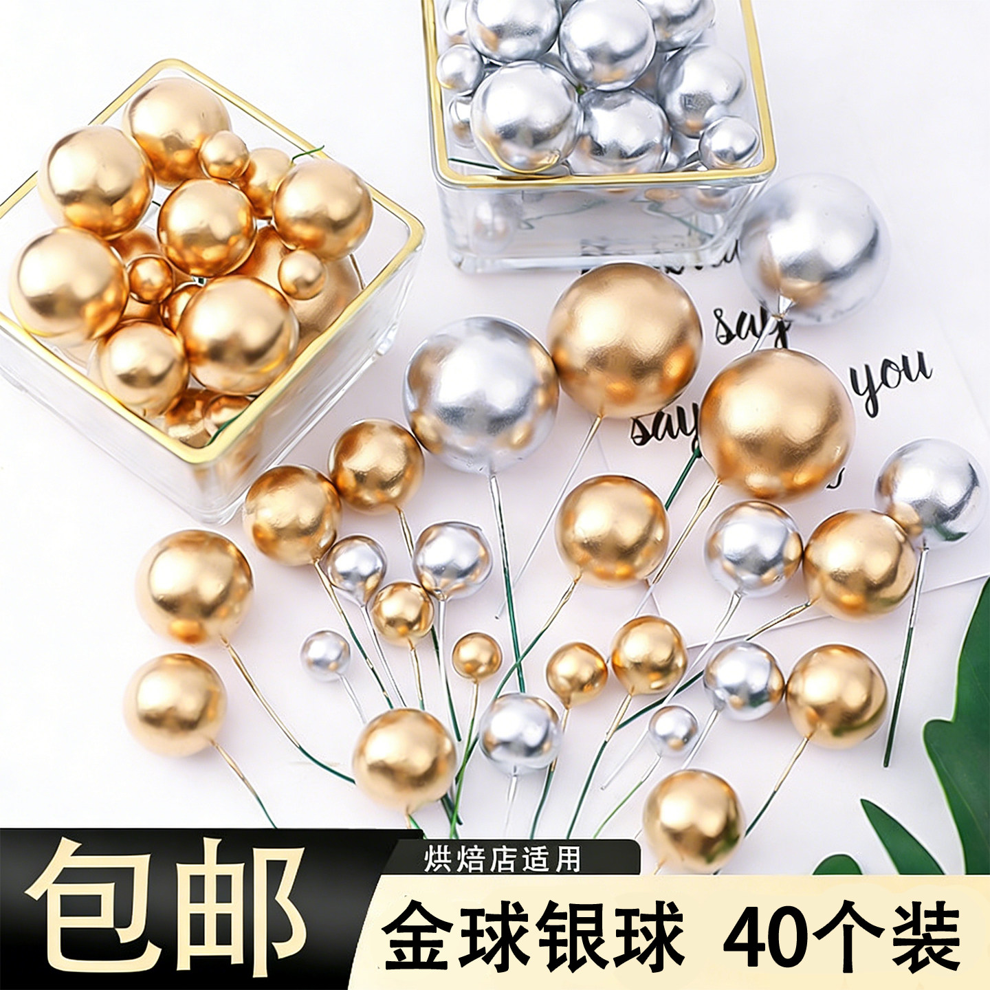 📚 金球银球蛋糕装饰插件透明球幻彩球金珠烘焙蛋糕配件摆件40个装
