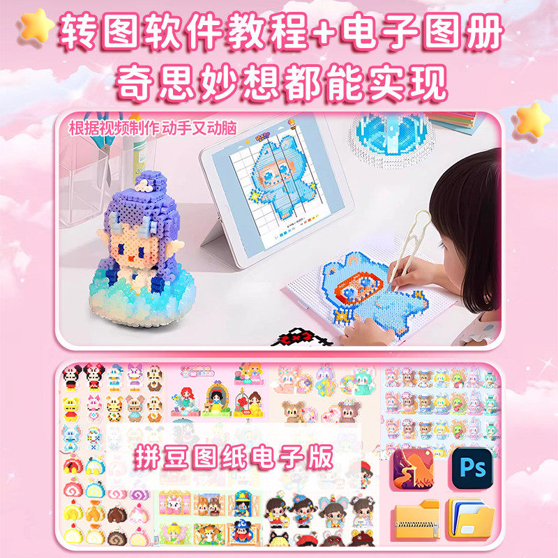 📚 拼豆DIY全套工具材料包120色拼豆手工女孩小玩具融合豆豪华工具包