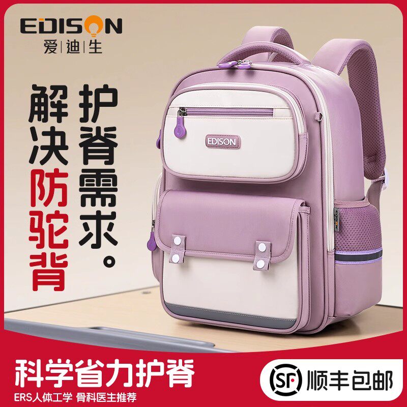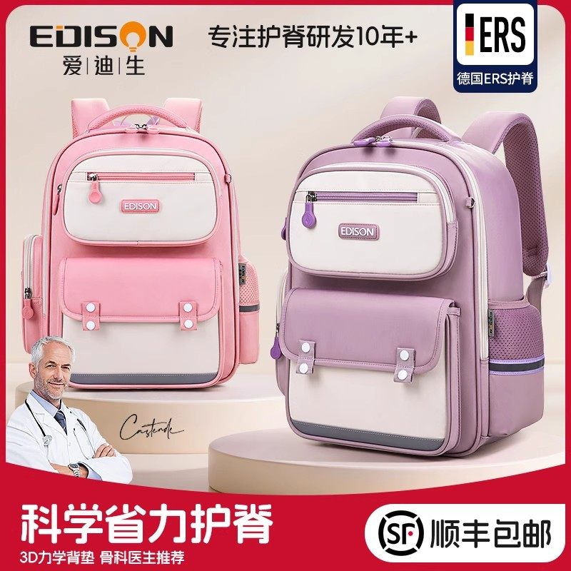 📚 爱迪生书包女生小学生2025新款一到六年级女孩减负护脊儿童背包女