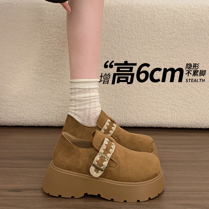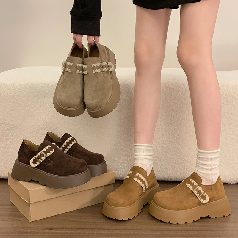 📚 勃肯鞋女加绒单鞋2025年春秋新款厚底松糕一脚蹬乐福鞋全包博肯鞋