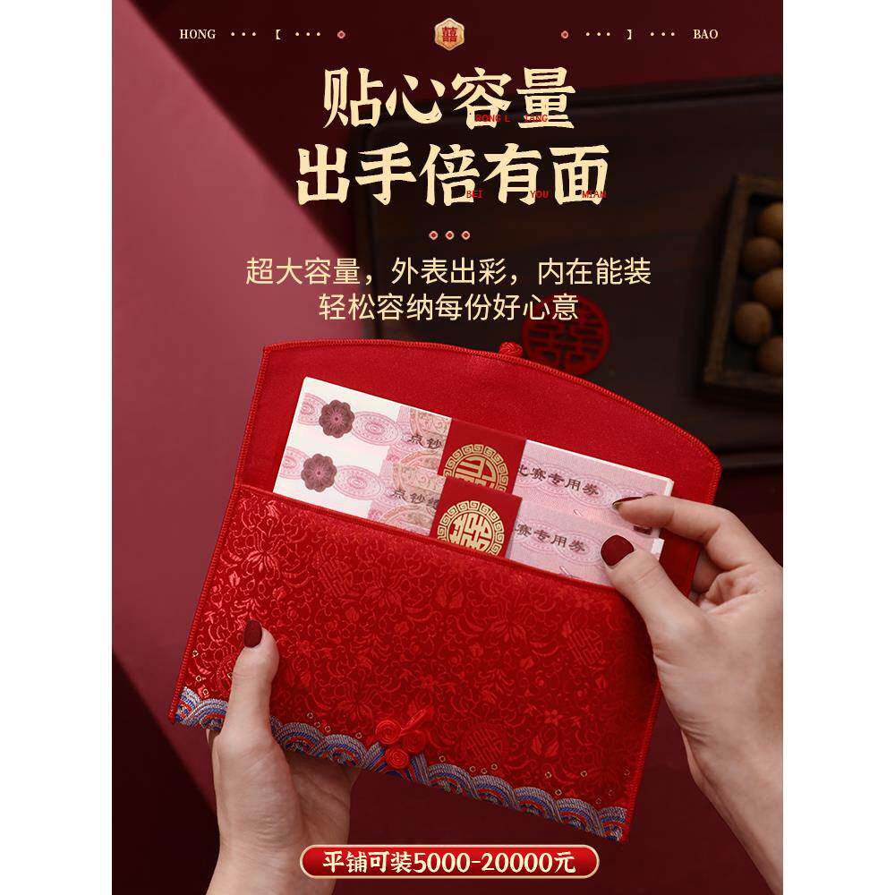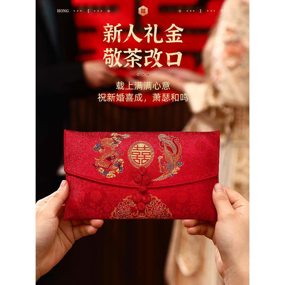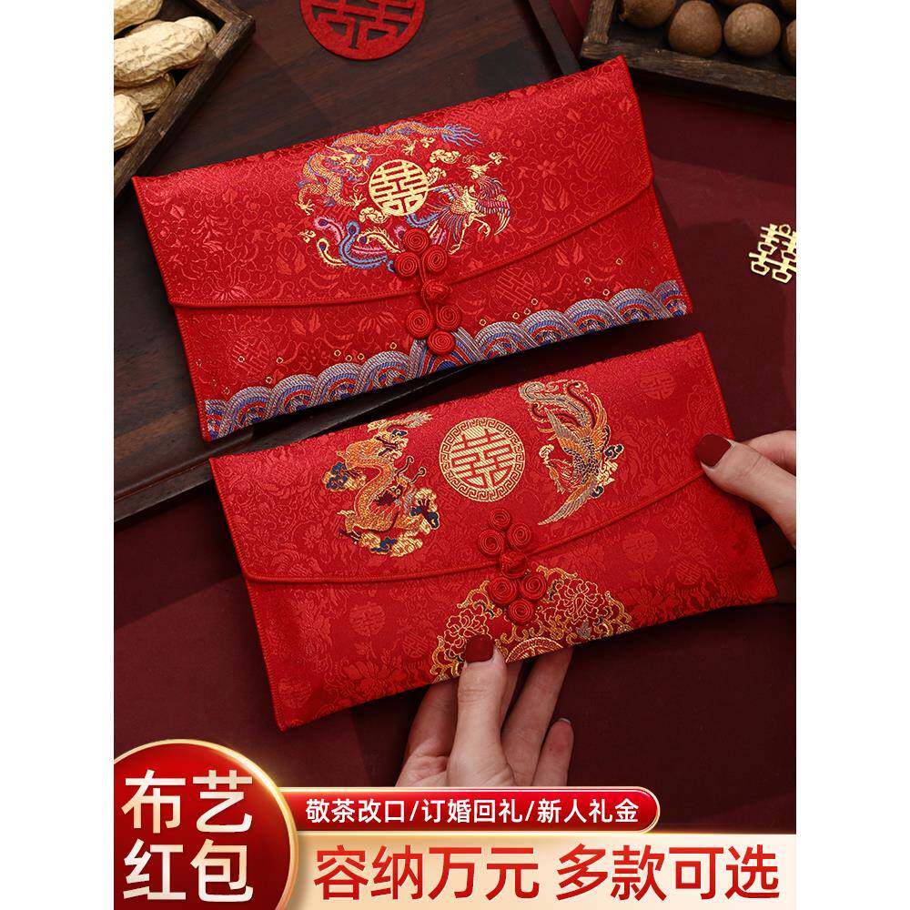 📚 红包结婚专用婚礼父母改口费敬茶布艺大号万元订婚喜字包一对新款