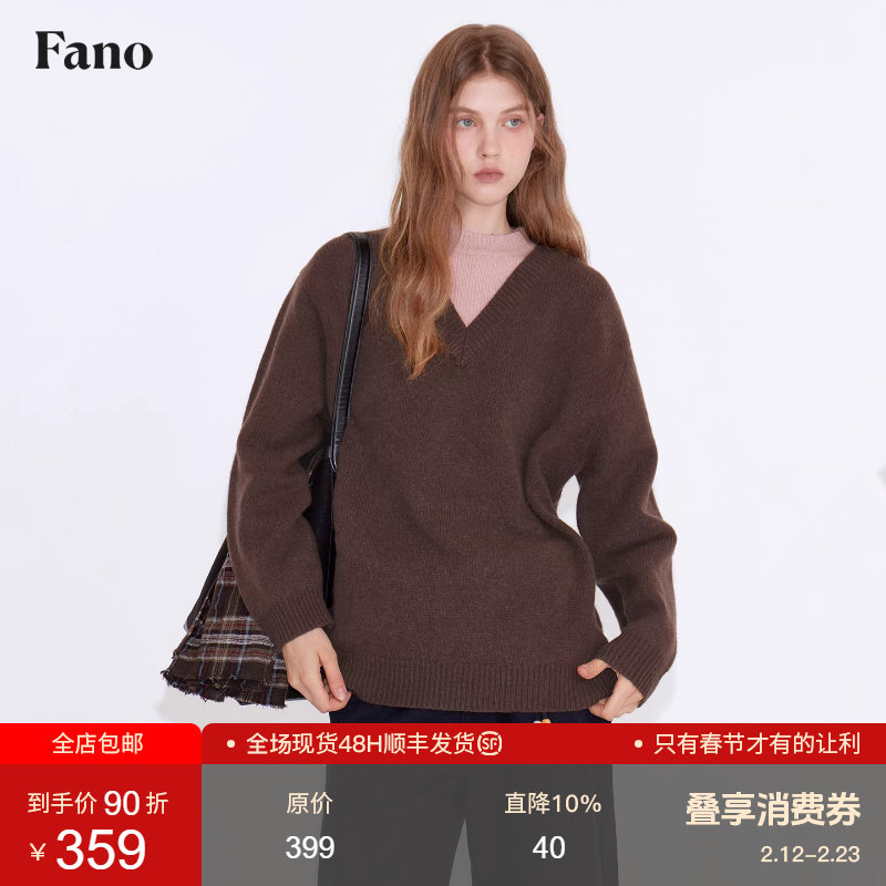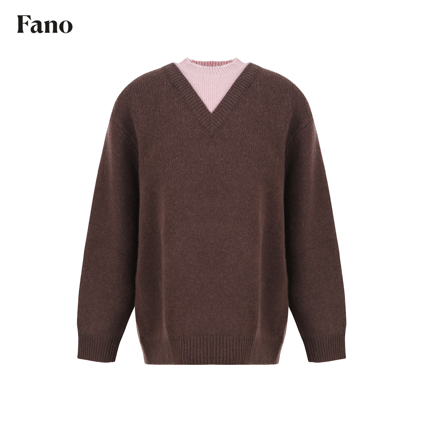 📚 范洛Fano 质感100%绵羊毛可露丽配色撞色假两件套头毛衣女上衣冬