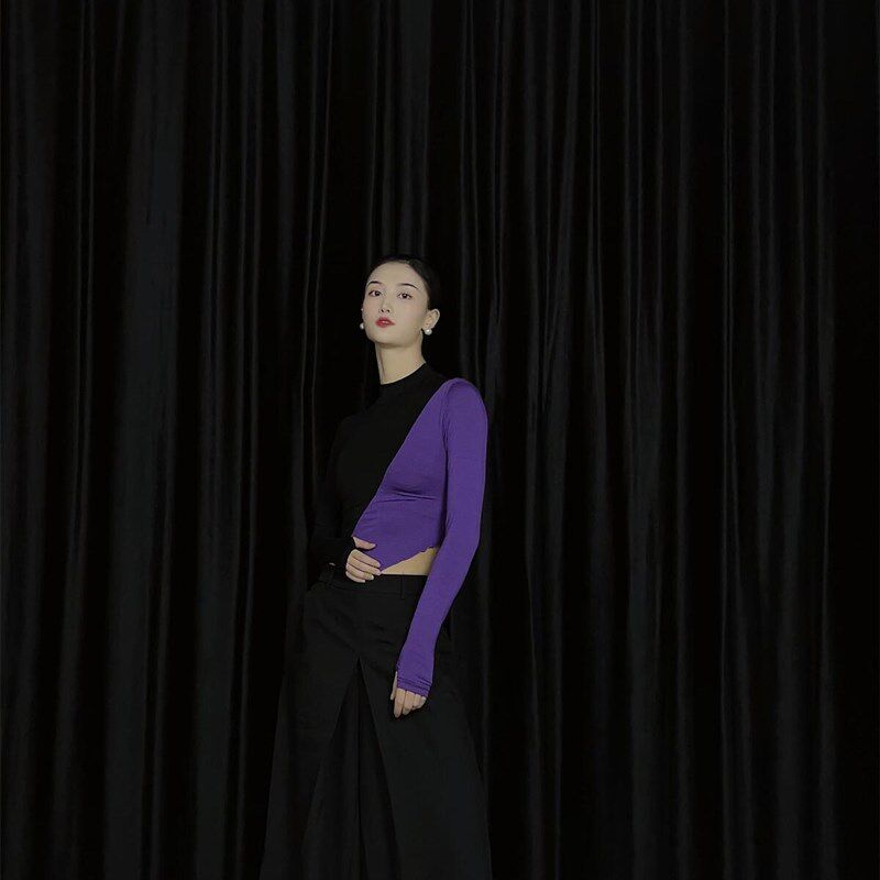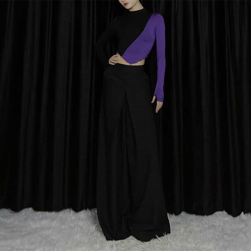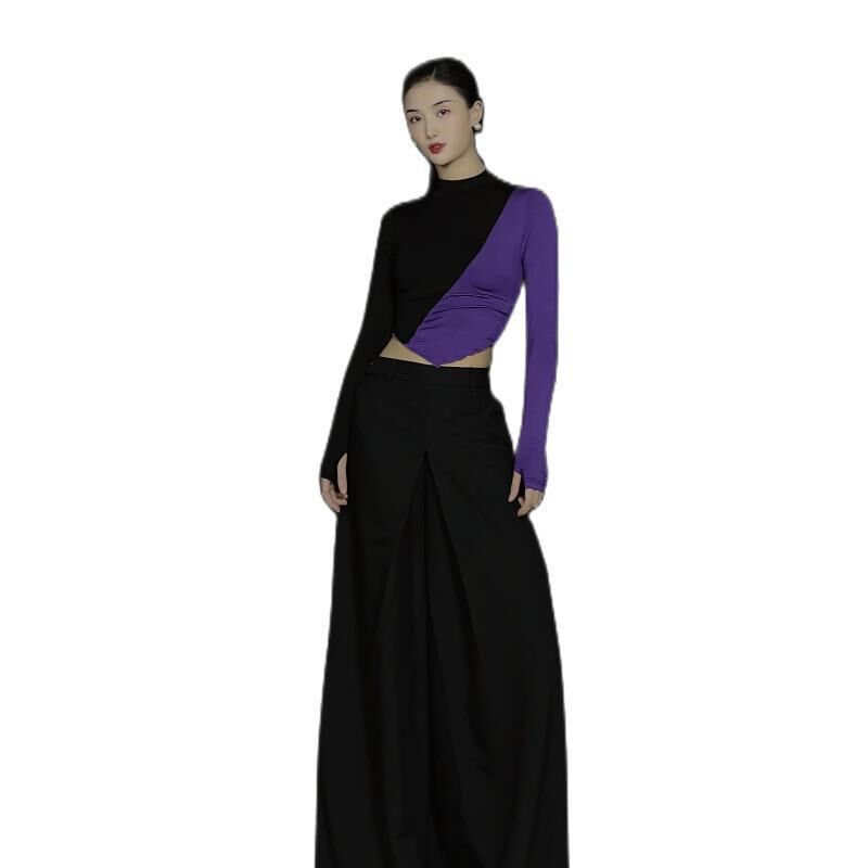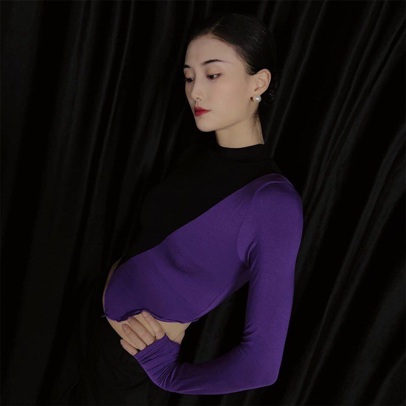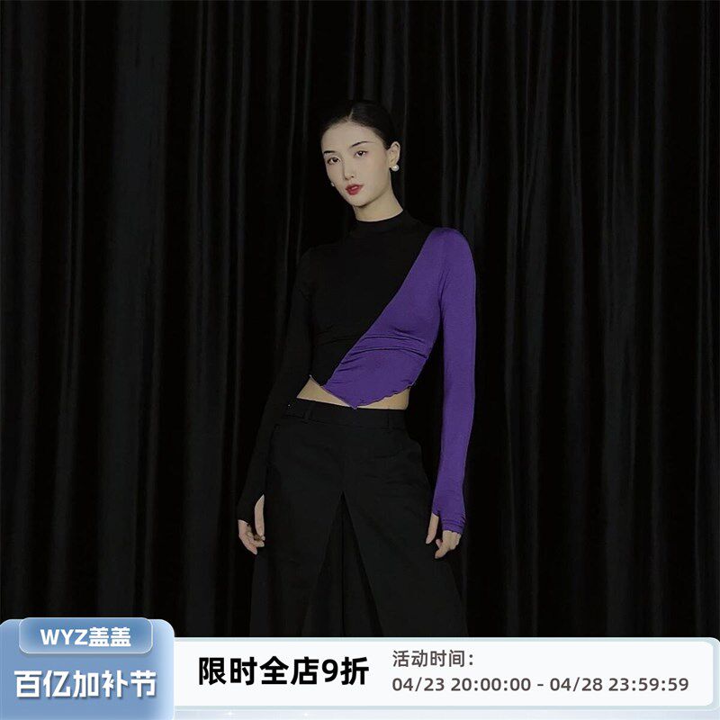 📚 速发WYZ盖盖高领撞色t袖长恤不规则紧身上衣士
