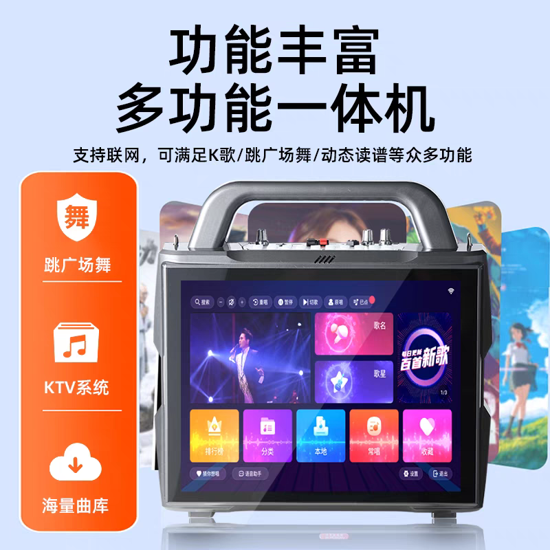 📚 广场美声家庭KTV手提点歌机户外触摸屏音箱一体机音响卡拉点唱机
