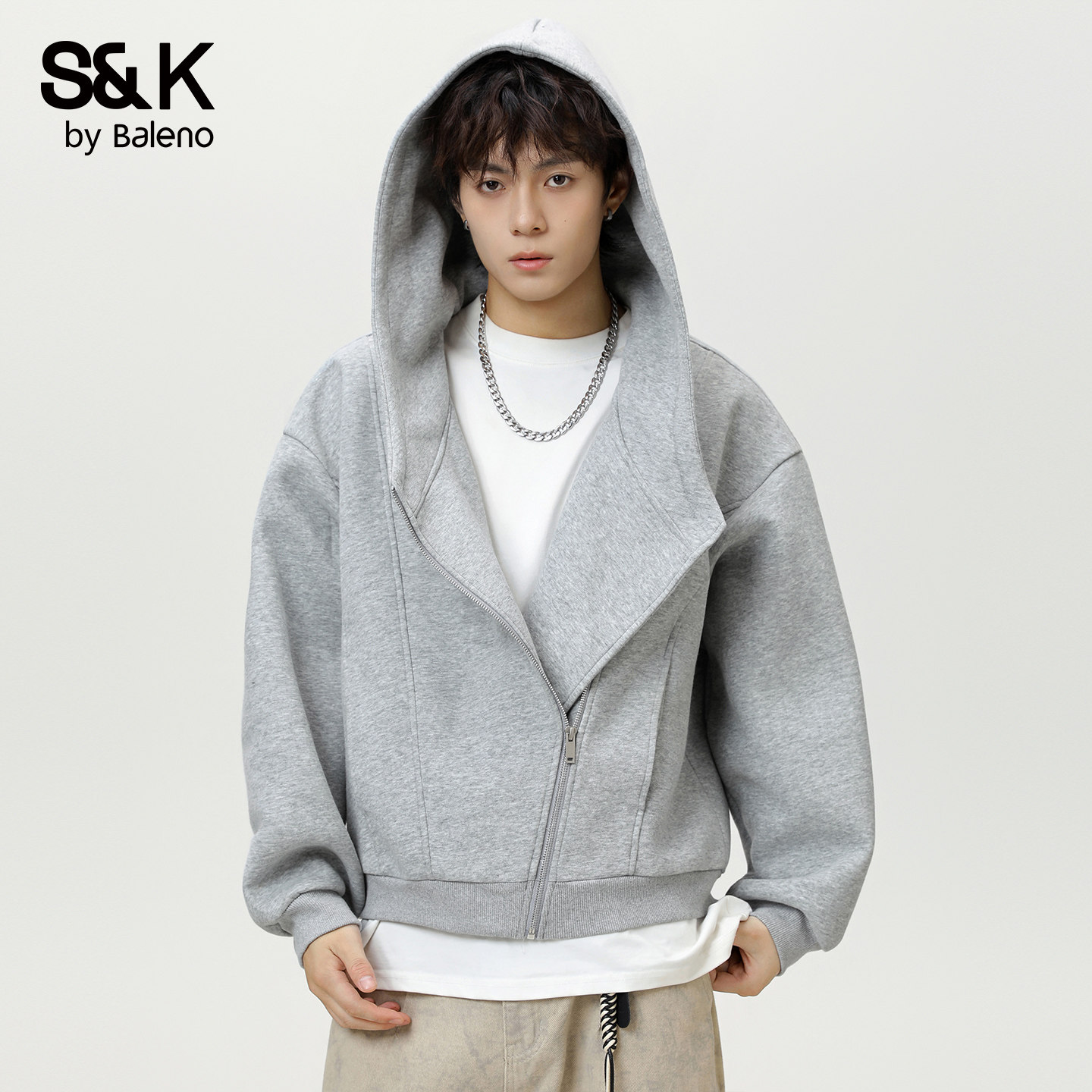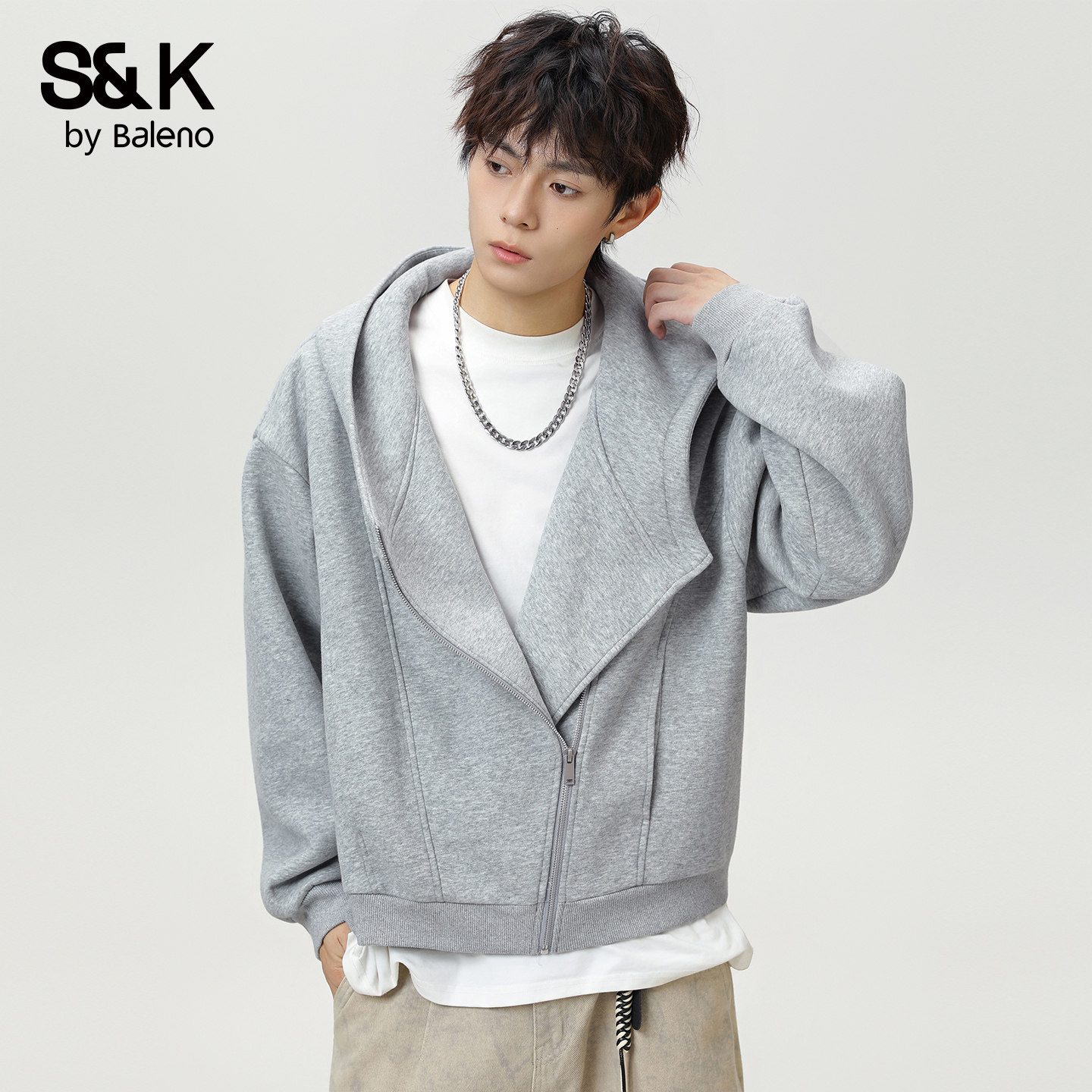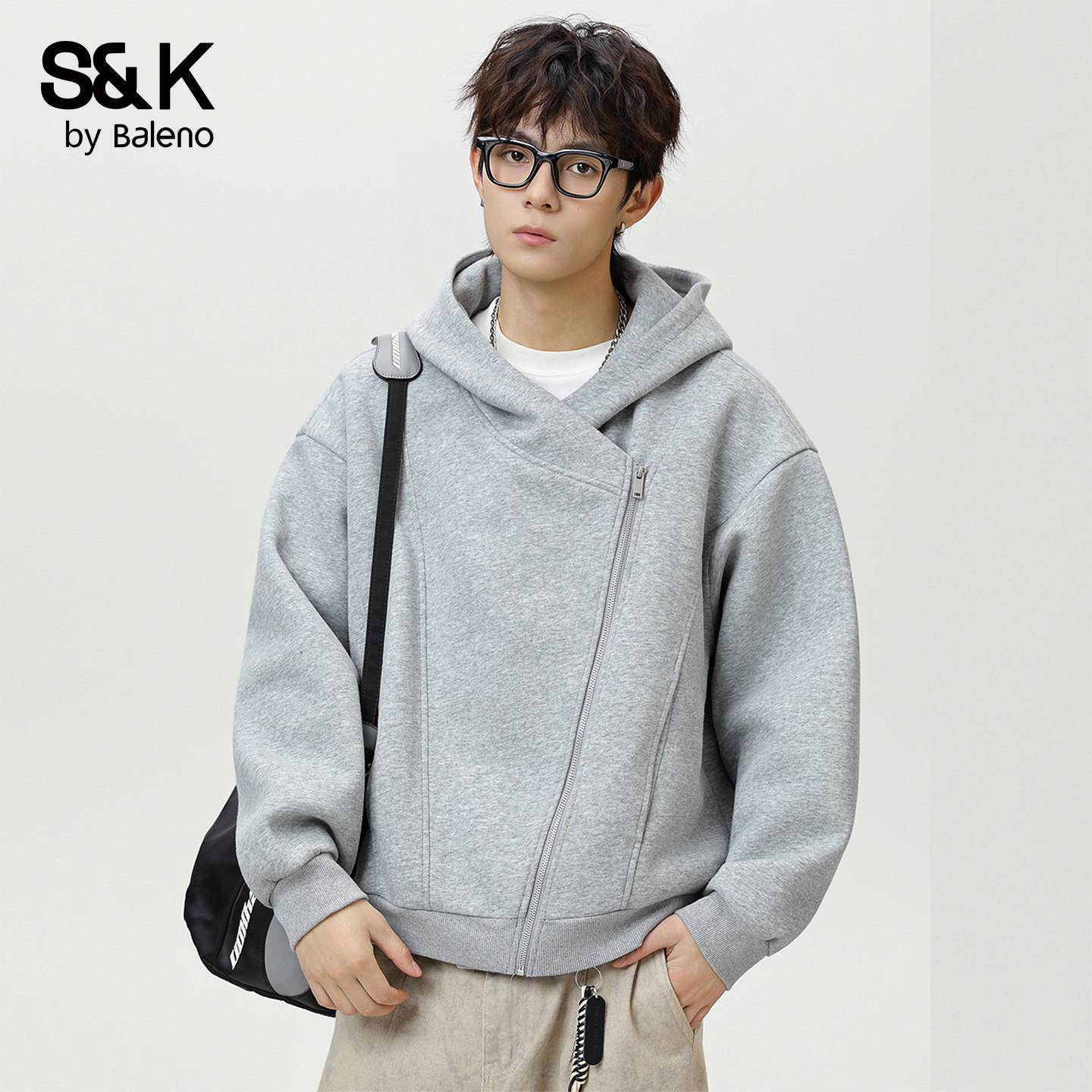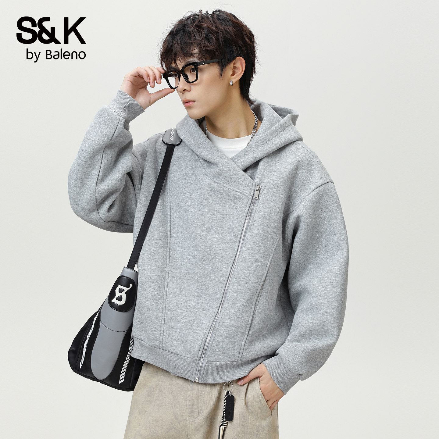 📚 班尼路SK斜拉链开衫卫衣男士春季新款cleanfit潮牌宽松连帽外套YS