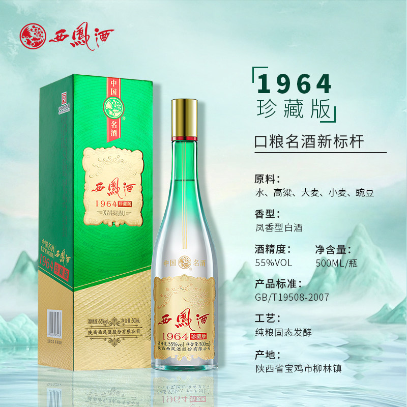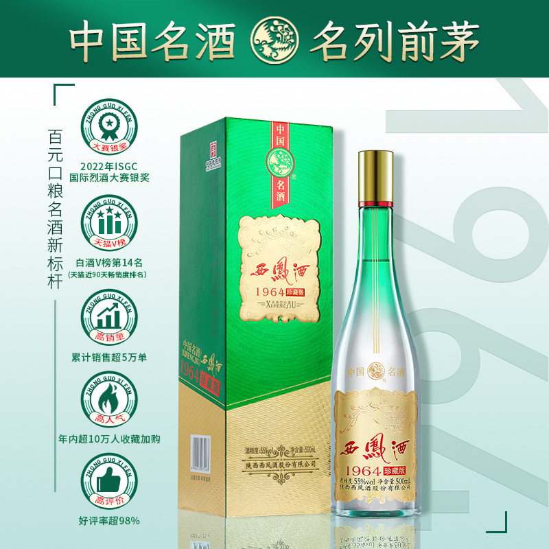 📚 西凤酒55度1964珍藏版500ml*6凤香型整箱送礼佳品含礼袋