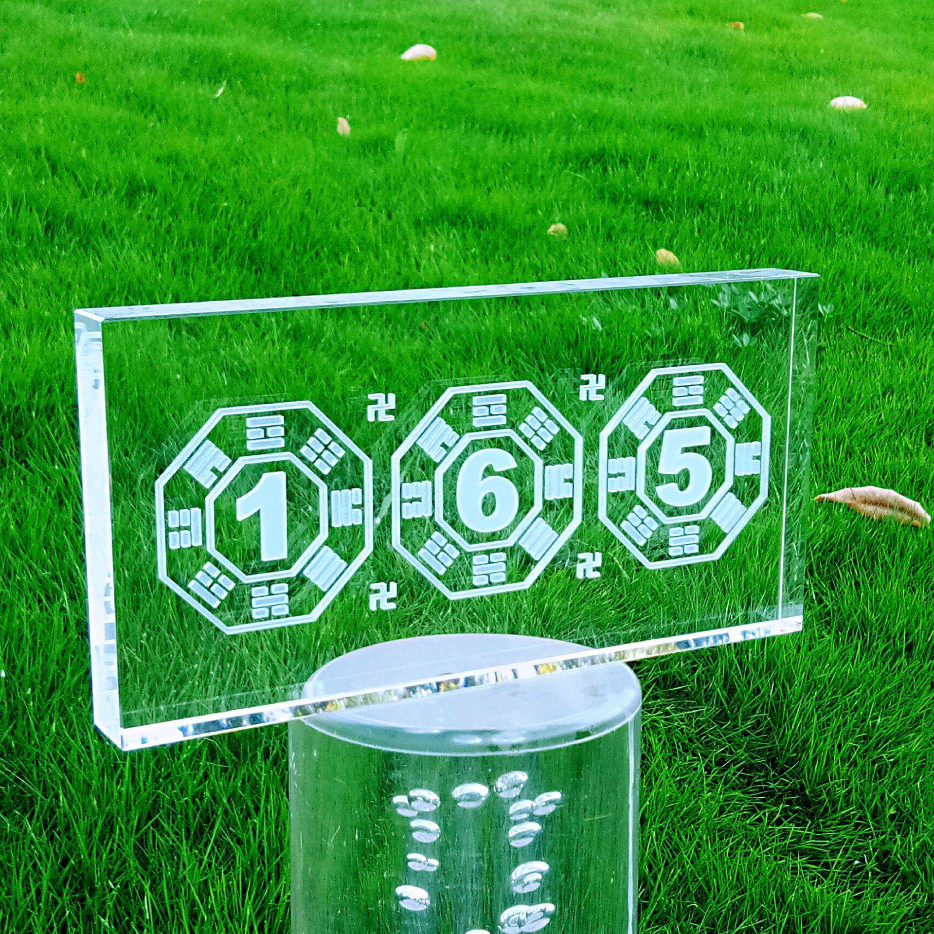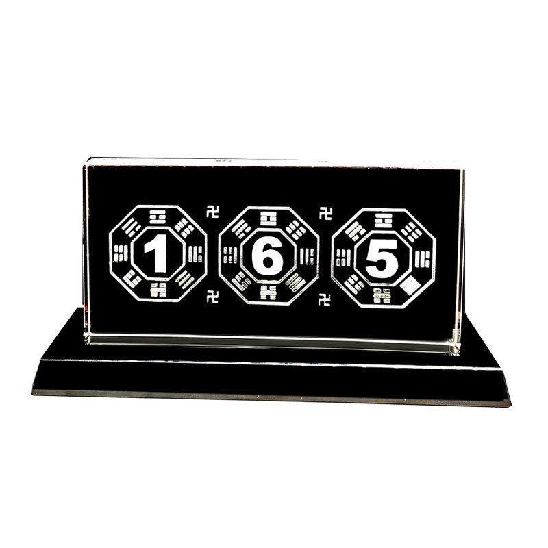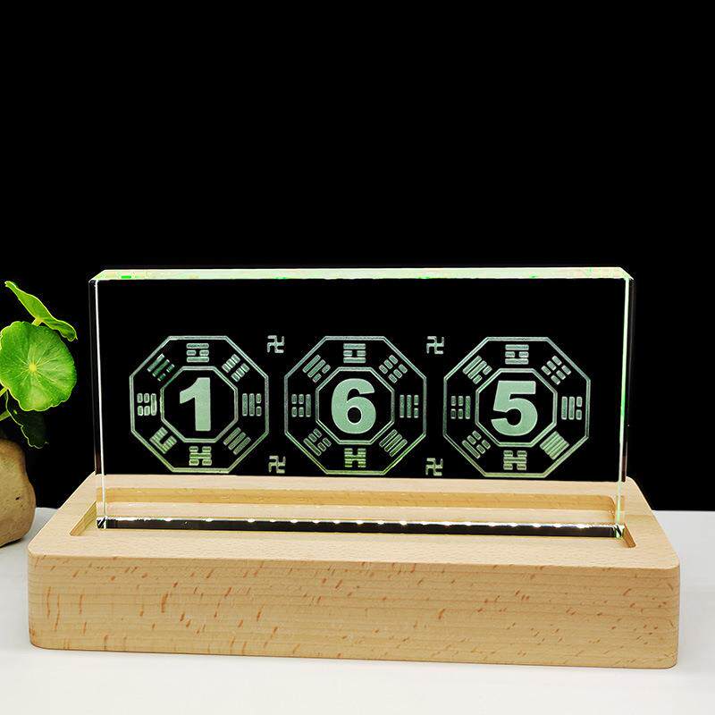 📚 165行平衡牌易数字牌摆57水晶内五DBD雕风水件灯光七数彩榉木底座