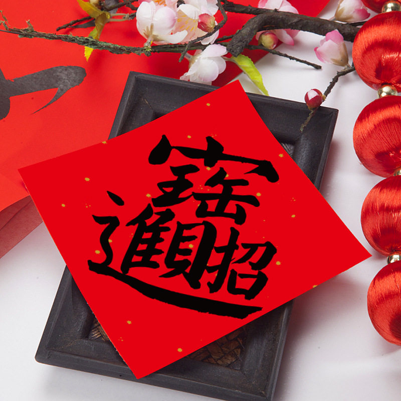 📚 新年迷你小福字贴马年宣纸风水福字门贴红纸自粘大张斗方对联春节手写书法成品挥春装饰年货乔迁布置套装贴纸