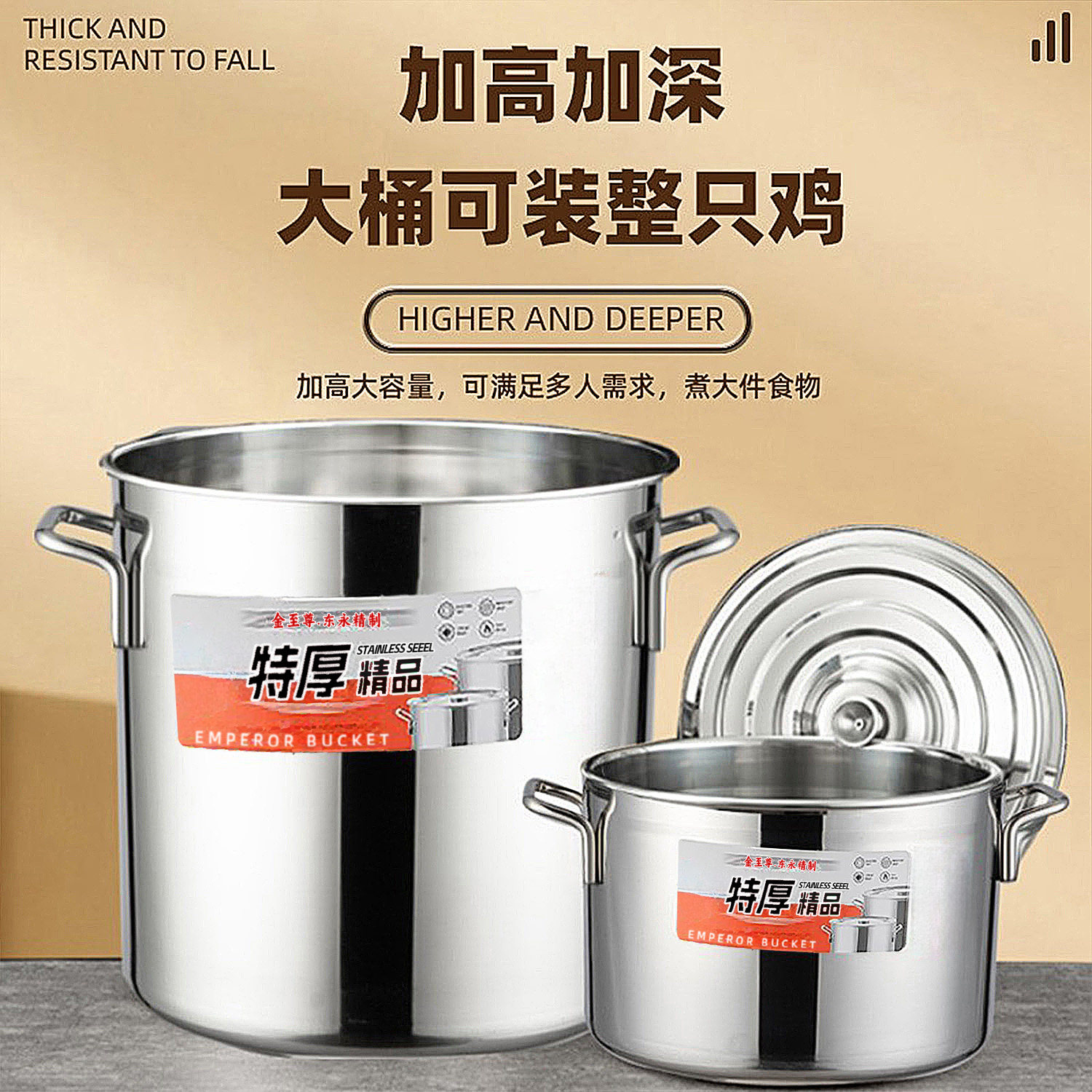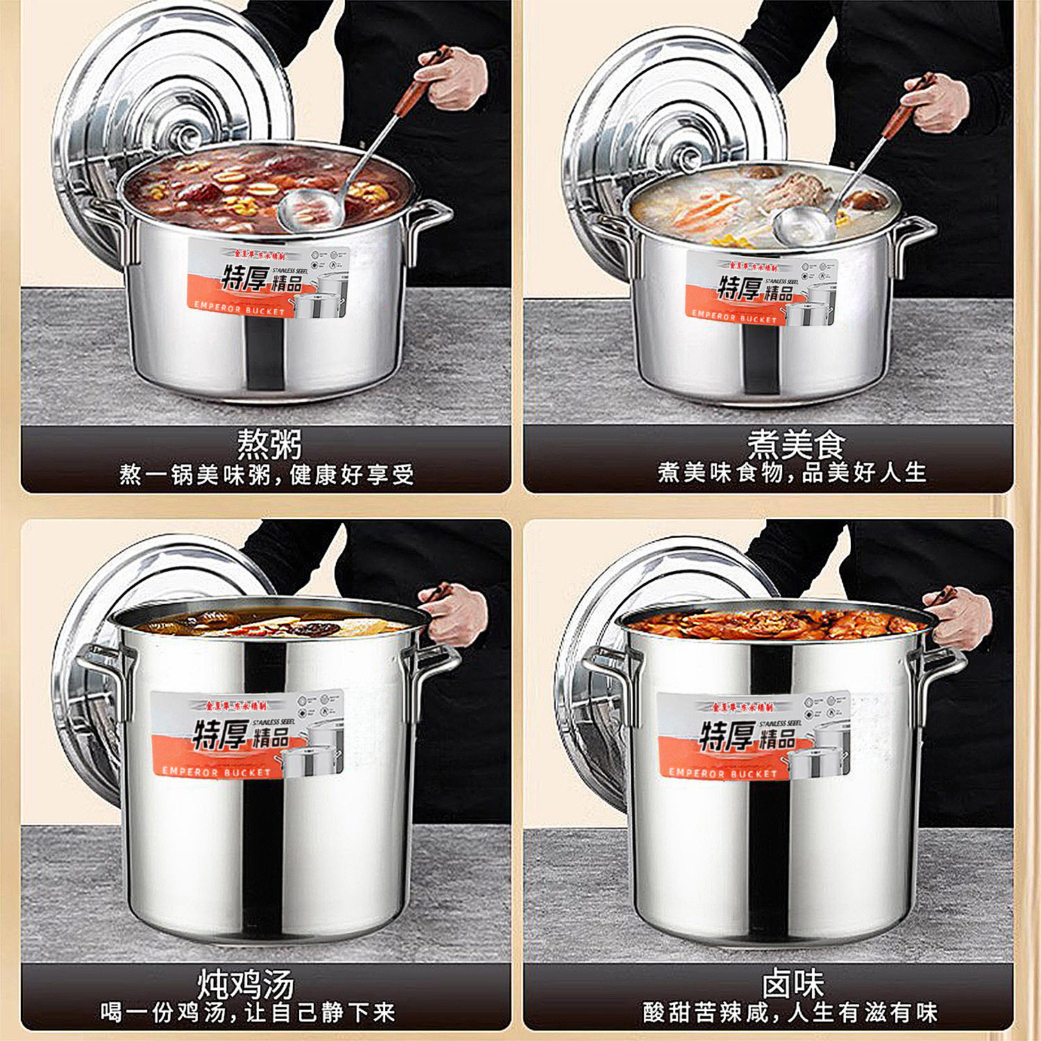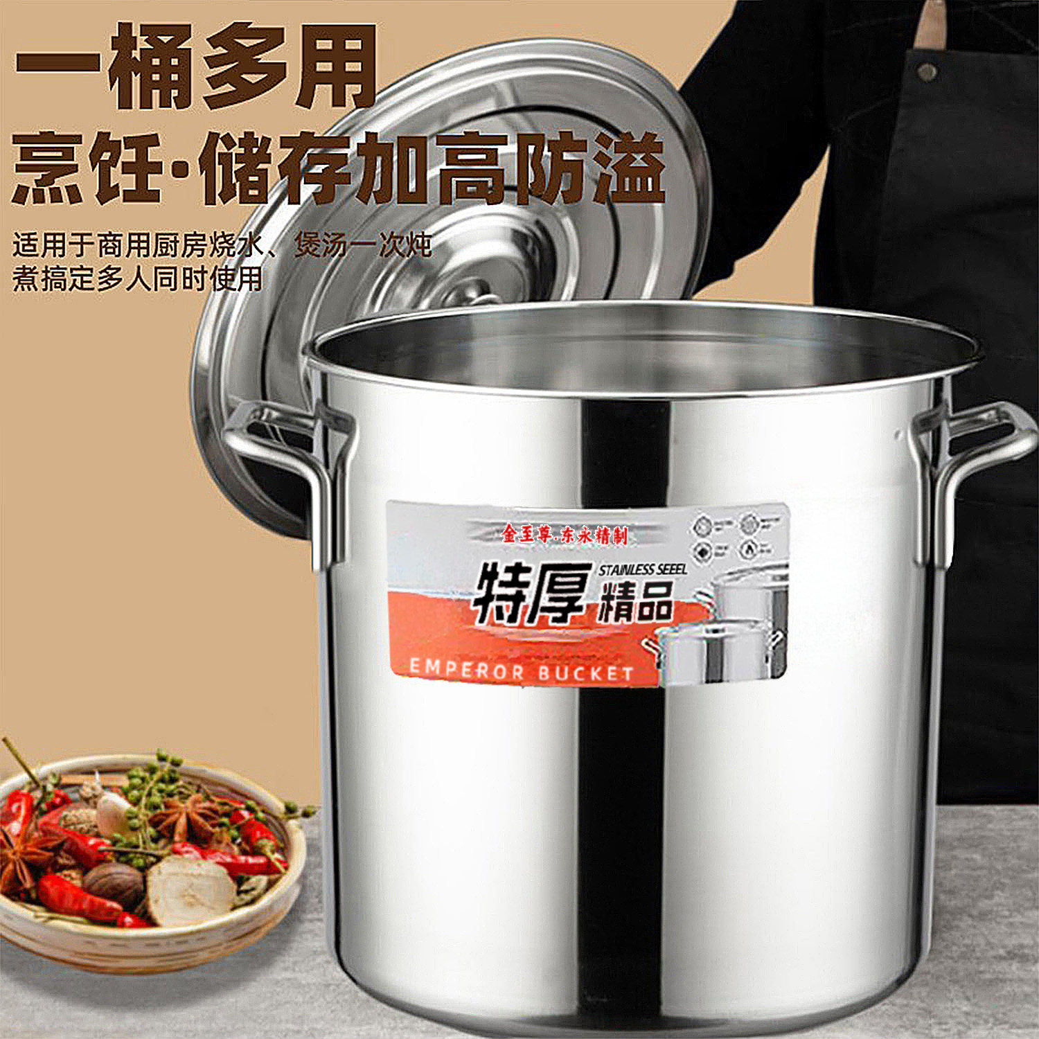 📚 不锈钢汤桶圆桶大容量卤桶商用带盖水桶家用煮锅炖锅加厚老式汤锅