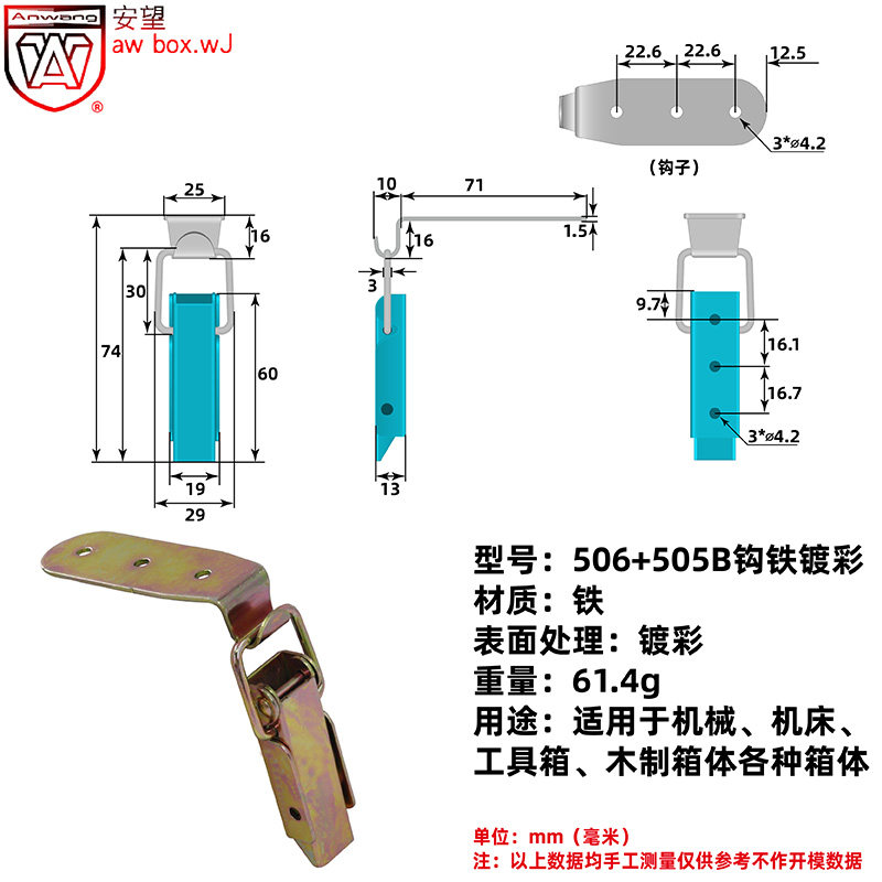 📚 安望506 505B铁镀彩箱扣箱包卡扣卡锁鸭嘴扣工具箱搭扣木箱