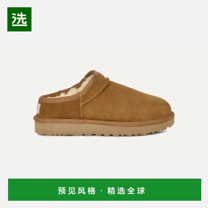 📚 欧洲直邮UGG Classic女士栗色拖鞋羊毛经典编织厚底半拖鞋