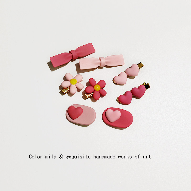 📚 小女心粉色小发夹女侧边夹磨砂爱心彩色甜美可爱发饰刘海边夹发卡