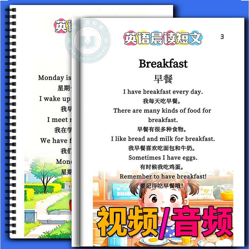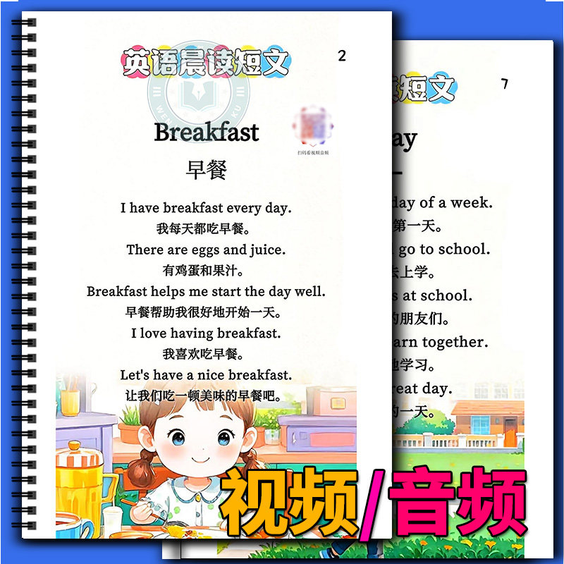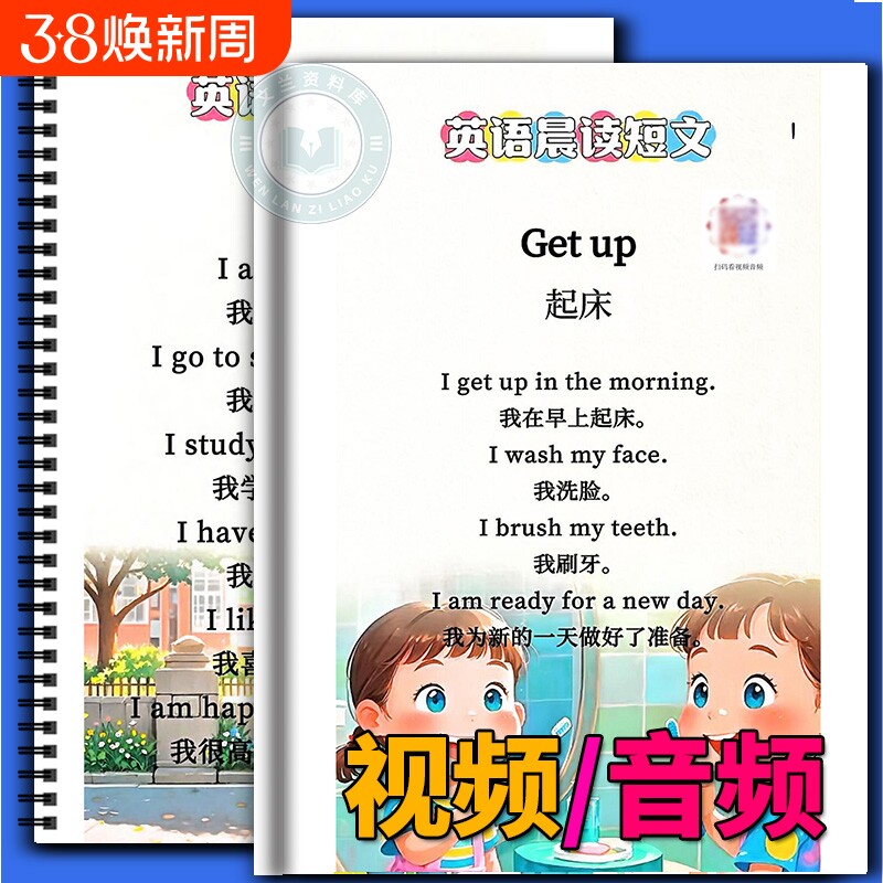 📚 入门基础自学英文短句扫码视频音频小学英语单词阅读训练晨读扩写积累知识学习通用练习扩句短文